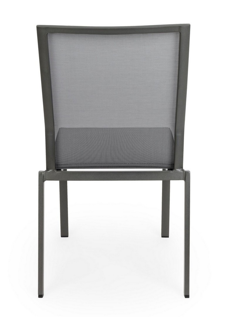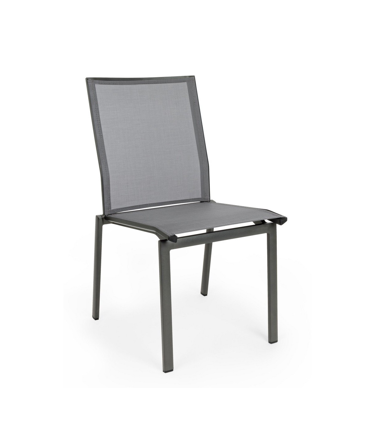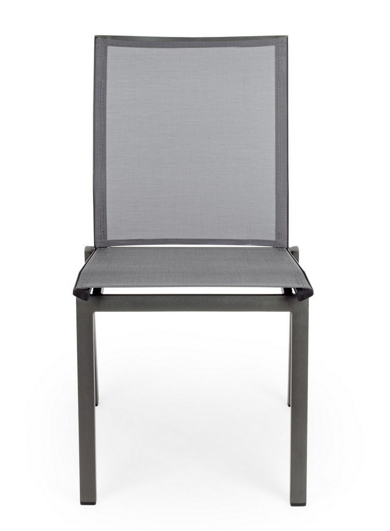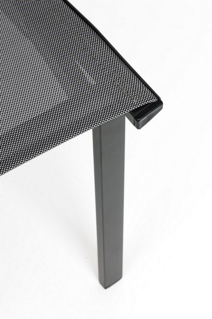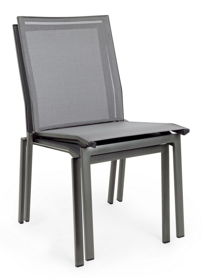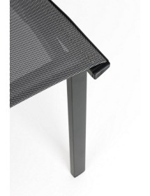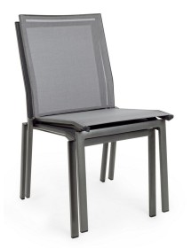 STRUTTURA IN ALLUMINIO, VERNICIATO A POLVERE (POLIESTERE). SEDUTA E SCHIENALE RIVESTITI IN TEXTILENE PHIFER 1X1. IMPILABILE.