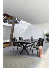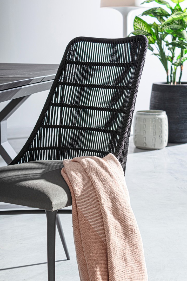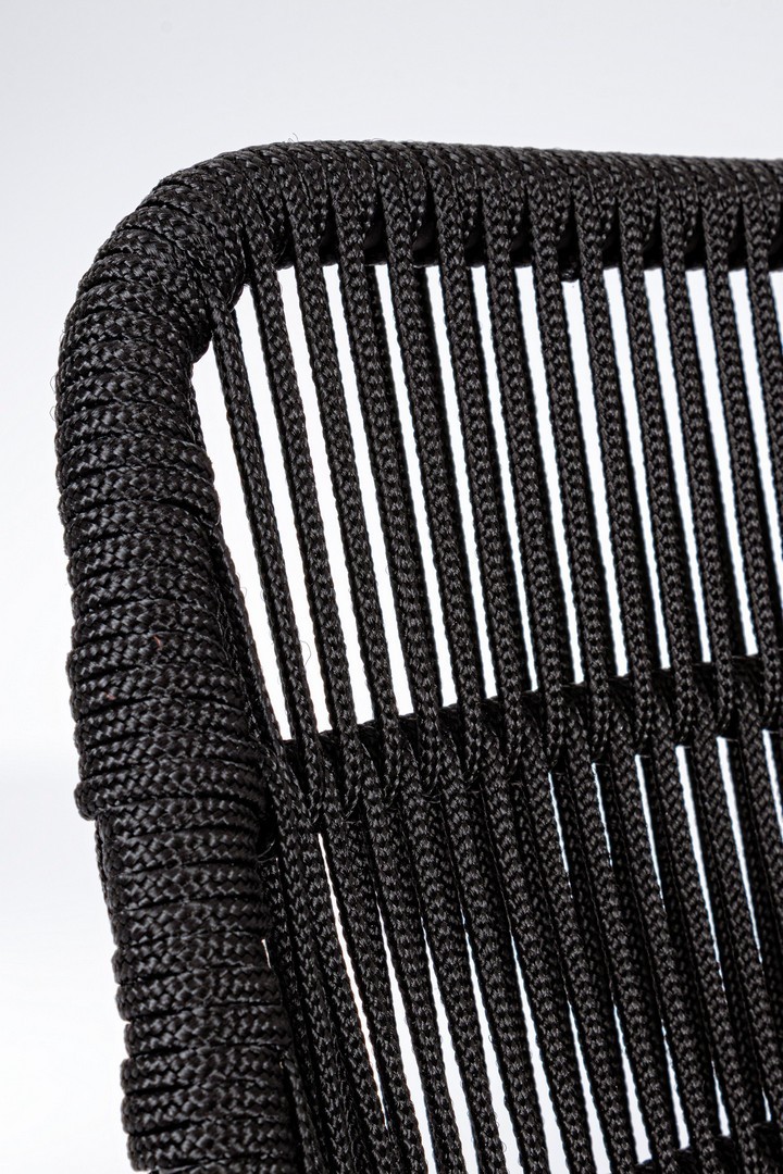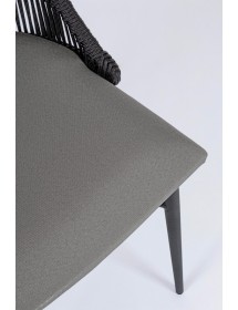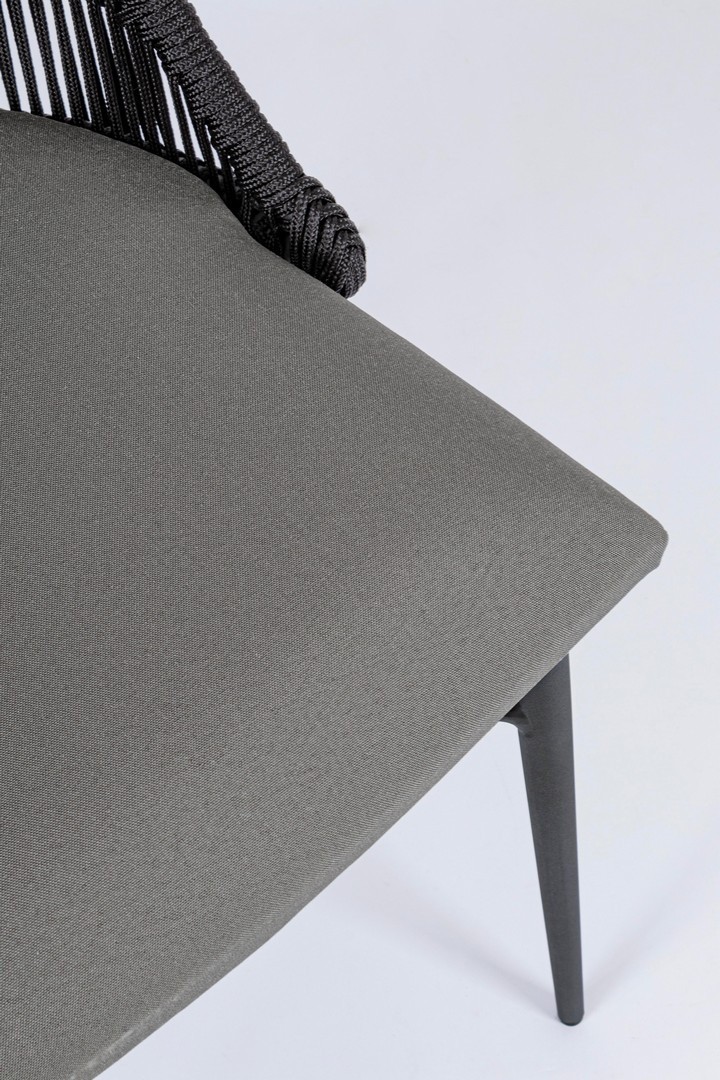 STRUTTURA IN ALLUMINIO (FUSIONE) VERNICIATO A POLVERE (POLIESTERE). INTRECCIO PER ESTERNO IN CORDA (POLIPROPILENE), IDROREPELLENTE E RESISTENTE AI RAGGI UV. SEDUTA NON SFODERABILE CON TESSUTO SUNPROOF OLEFIN (100% POLIPROPILENE). IMBOTTITURA PER ESTERNO QUICK DRY FOAM (ANTIUMIDITA').