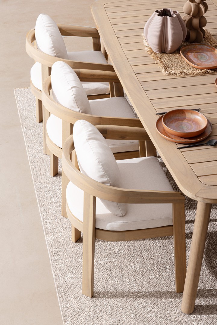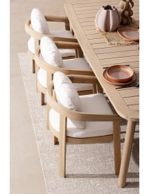 LEGNO DI ACACIA FSC 100%, FINITURA A OLIO (EFFETTO TEAK). CUSCINI SFODERABILI IN TESSUTO IDROREPELLENTE OLEFIN (100% POLIPROPILENE). VITERIA IN ACCIAIO GALVANIZZATO. DA ASSEMBLARE.NON VENDIBILE IN SPAGNA E POLONIA.