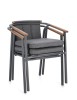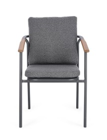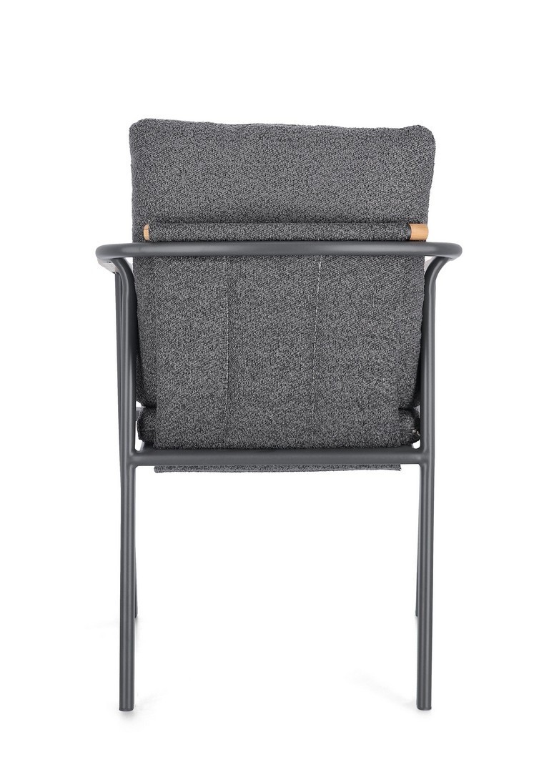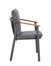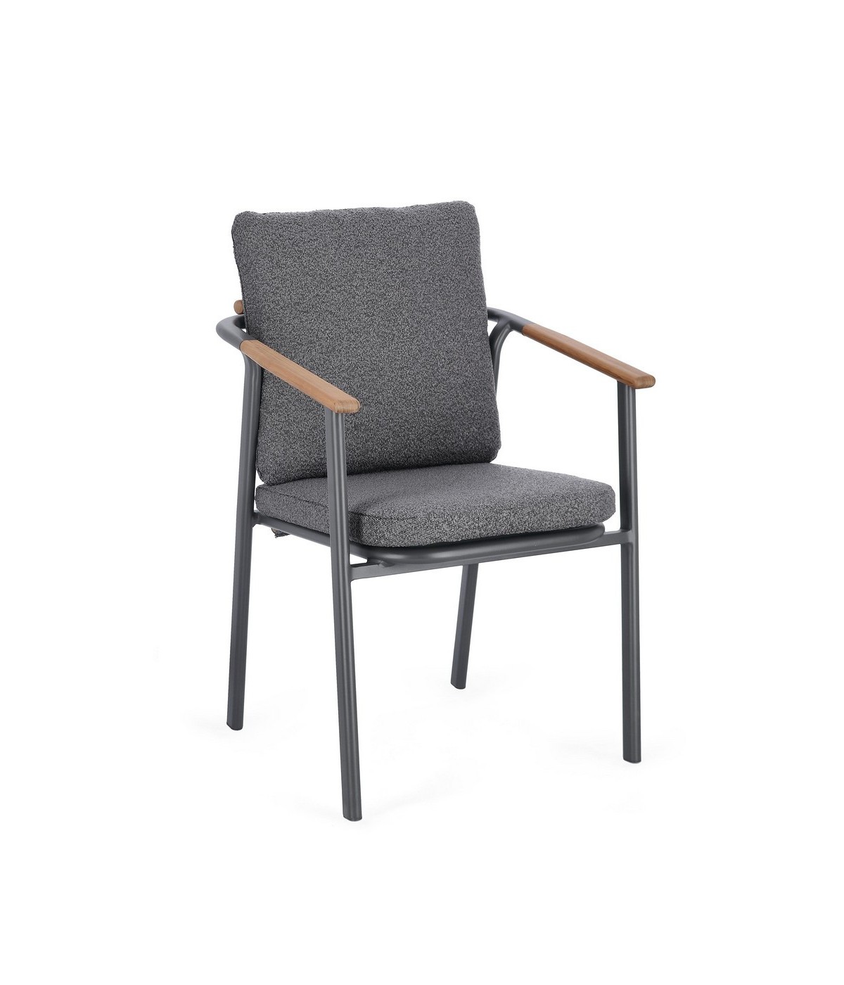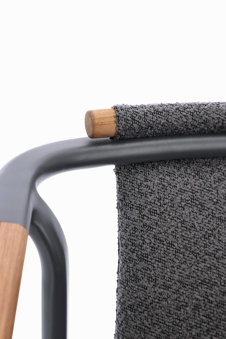 STRUTTURA IN ALLUMINIO VERNICIATO A POLVERE (POLIESTERE). SCHIENALE IN TESSUTO IDROREPELLENTE OLEFIN (100% POLIPROPILENE), EFFETTO BOUCLE'. BRACCIOLI E SCHIENALE CON INSERTO IN TEAK. CUSCINI SFODERABILI IN TESSUTO IDROREPELLENTE OLEFIN (100% POLIPROPILENE), EFFETTO BOUCLE'. IMPILABILE.