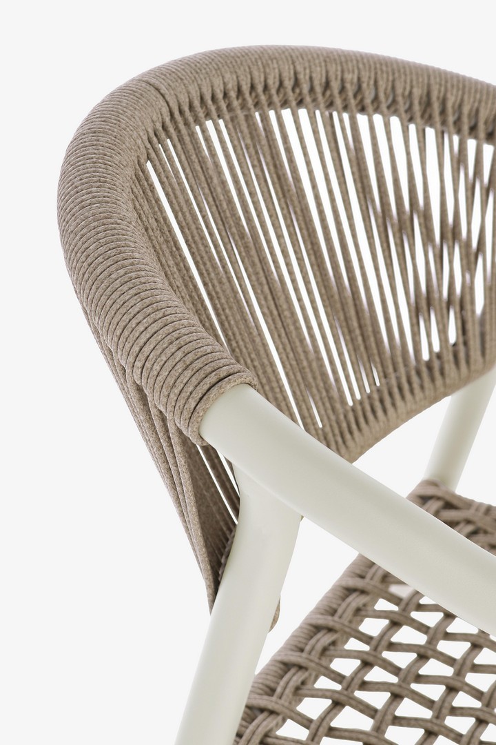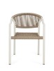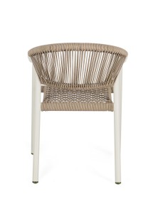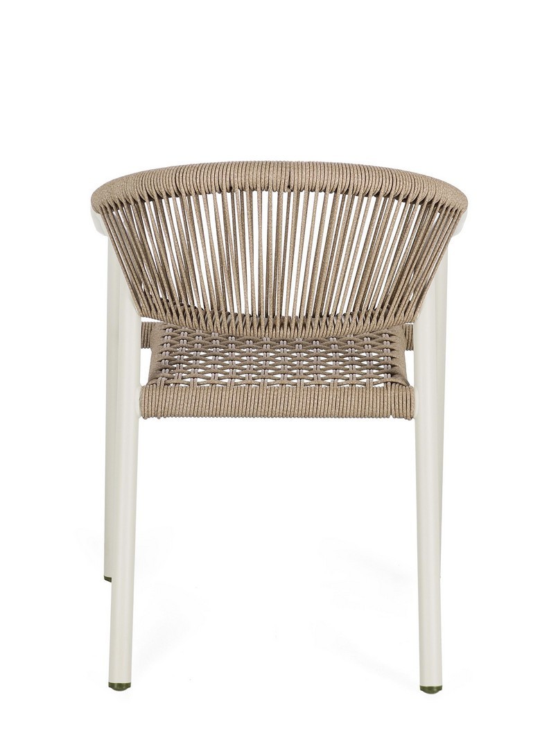 STRUTTURA IN ALLUMINIO, VERNICIATA A POLVERE (POLIESTERE), INTRECCIO IN FIBRA SINTETICA (TWISTED). IMPILABILE. IMBALLO SENZA CARTONE.