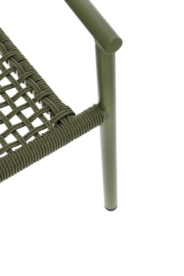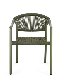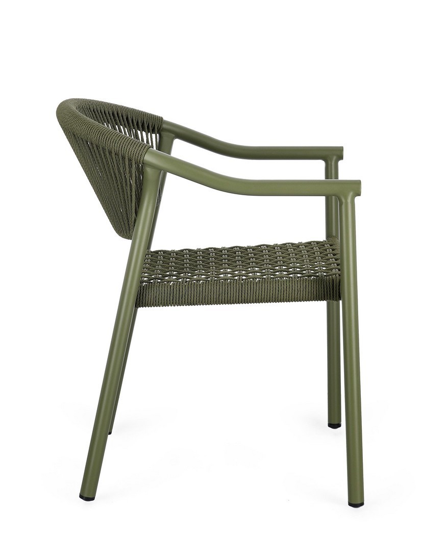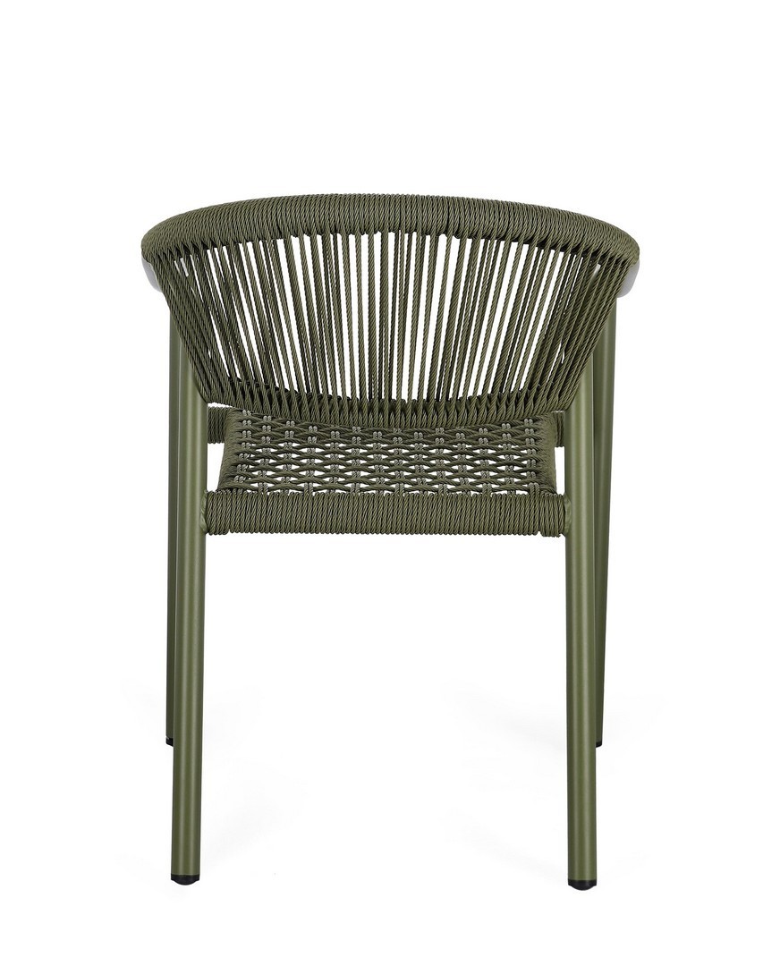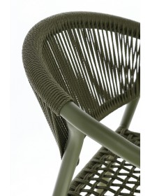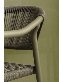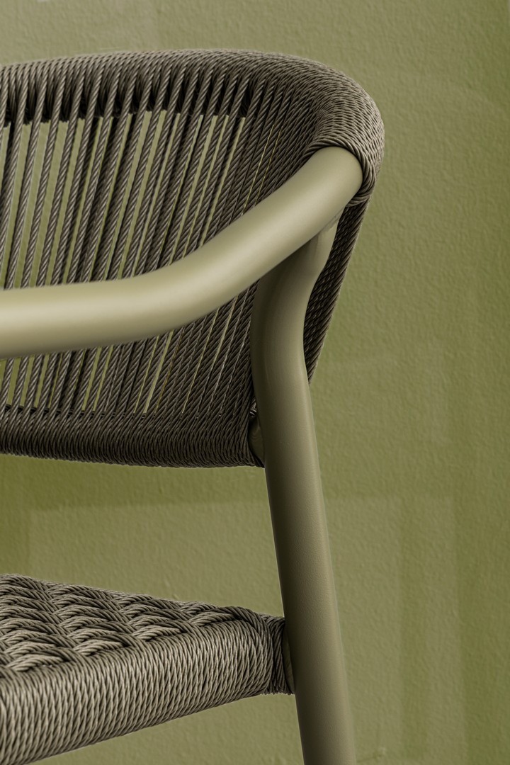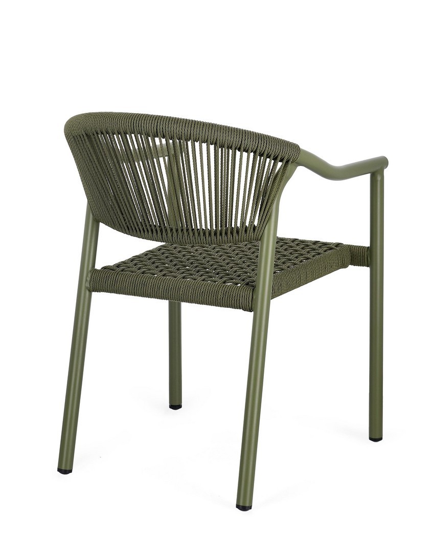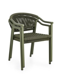 STRUTTURA IN ALLUMINIO, VERNICIATA A POLVERE (POLIESTERE), INTRECCIO IN FIBRA SINTETICA (TWISTED). IMPILABILE.