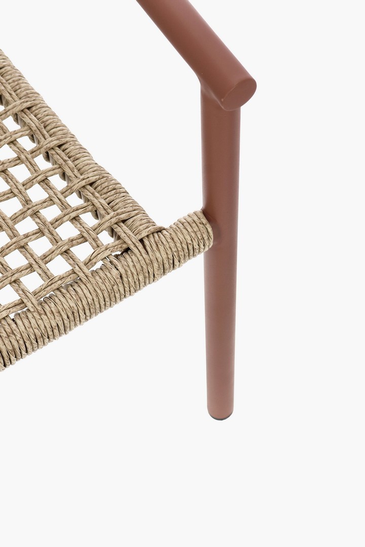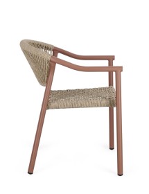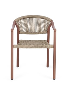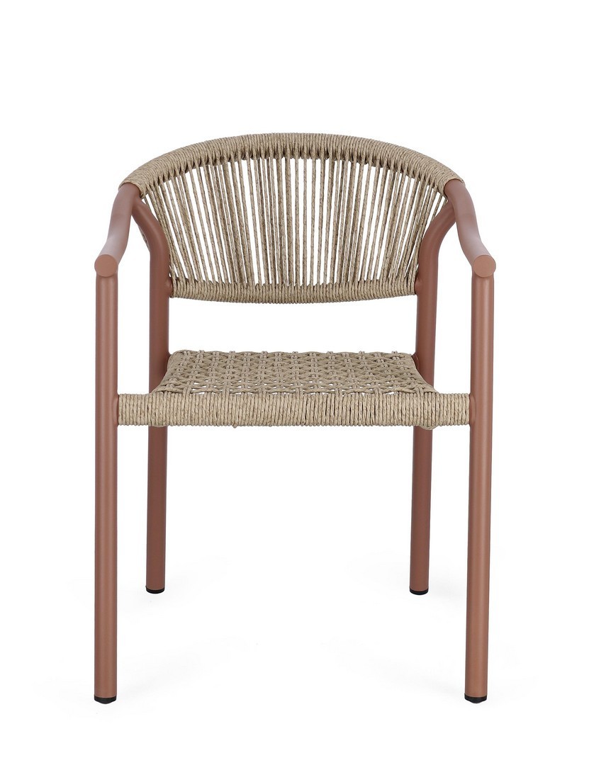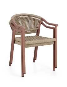 STRUTTURA IN ALLUMINIO, VERNICIATA A POLVERE (POLIESTERE), INTRECCIO IN FIBRA SINTETICA (TWISTED). IMPILABILE. IMBALLO SENZA CARTONE.