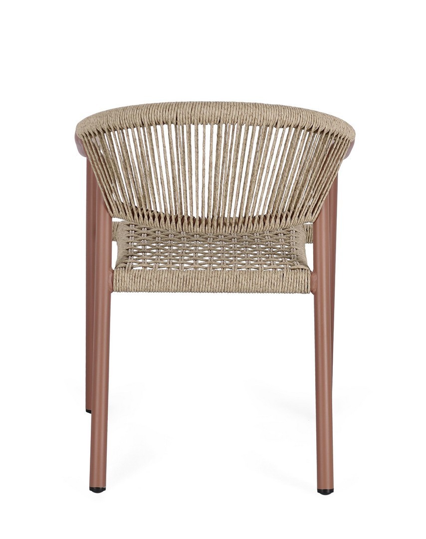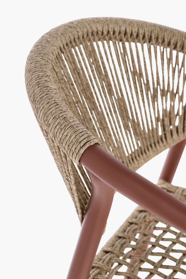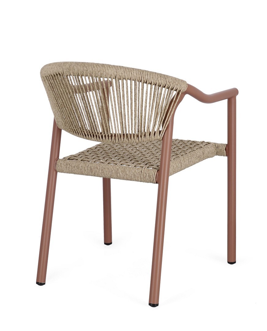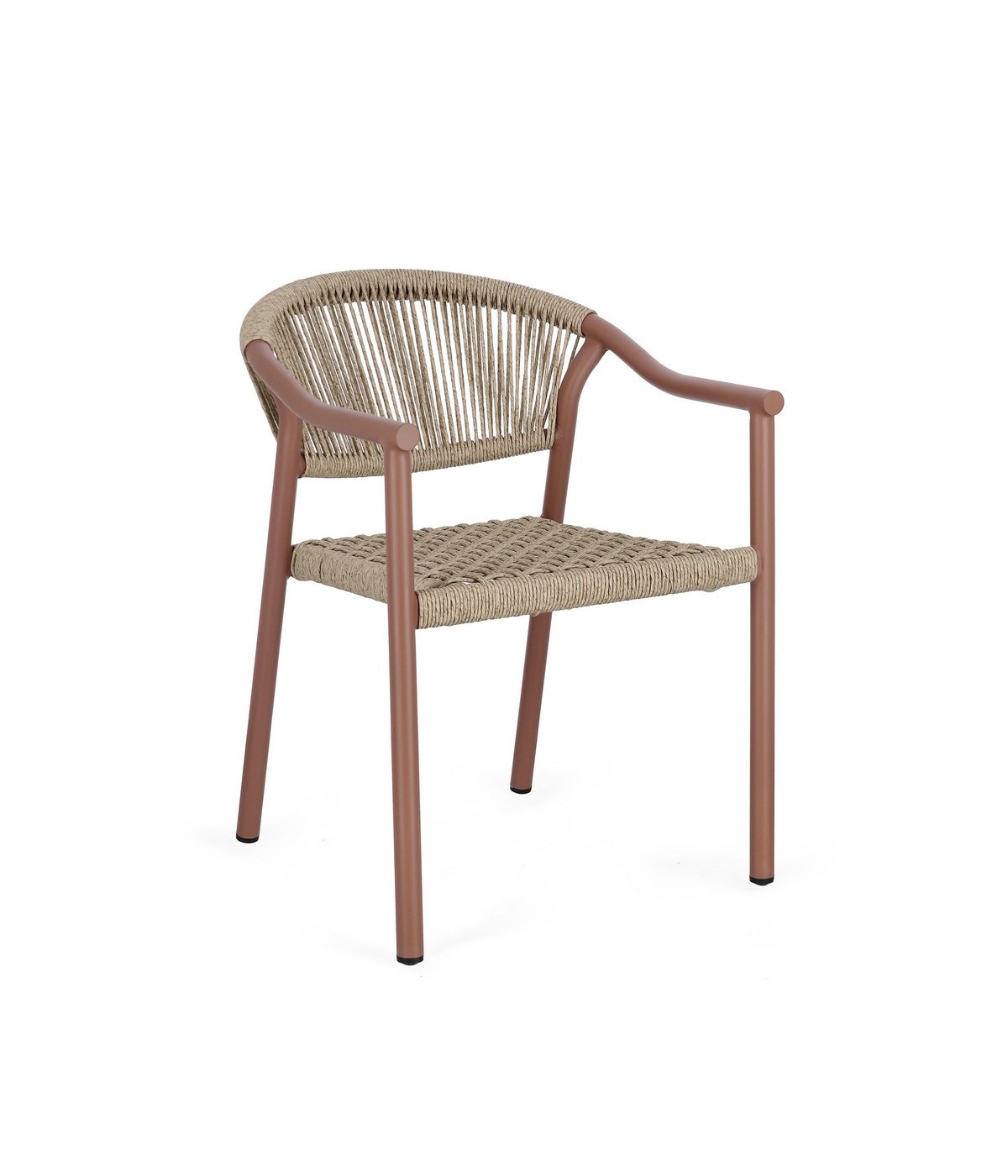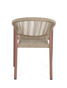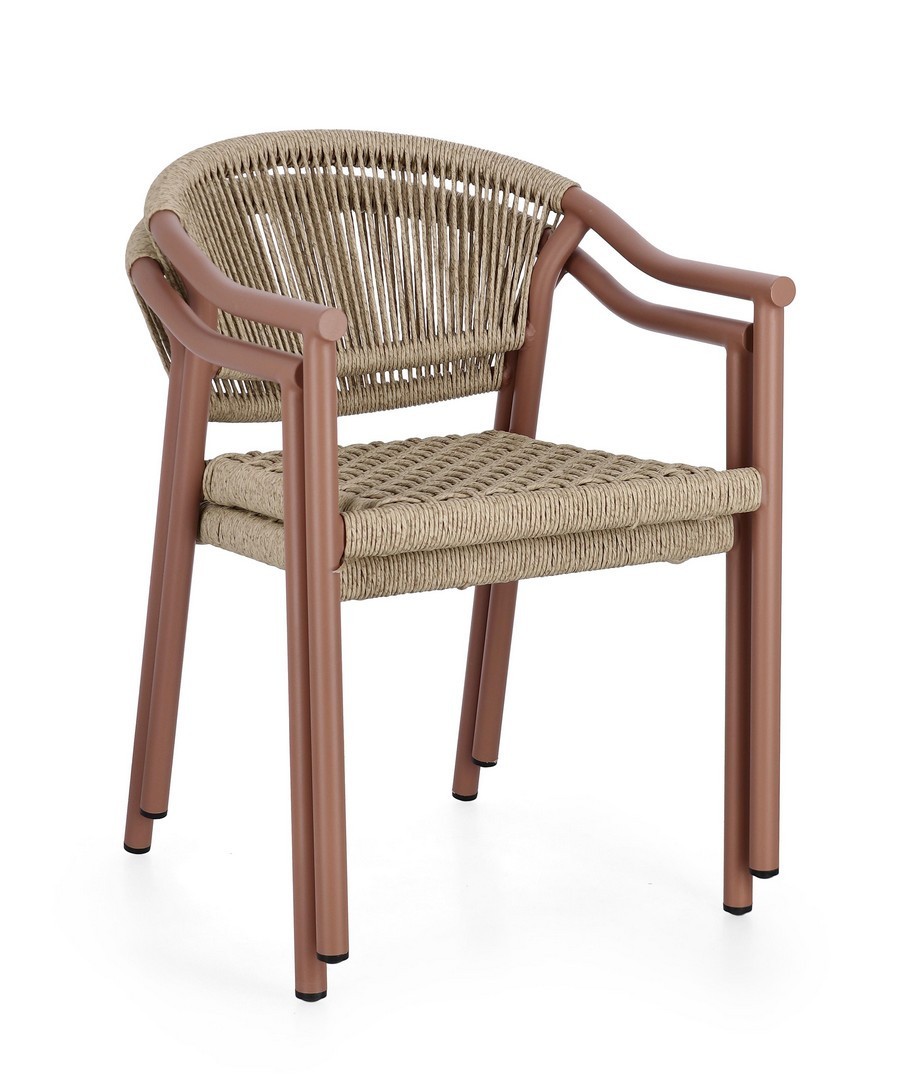 STRUTTURA IN ALLUMINIO, VERNICIATA A POLVERE (POLIESTERE), INTRECCIO IN FIBRA SINTETICA (TWISTED). IMPILABILE.