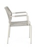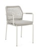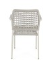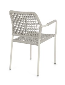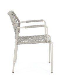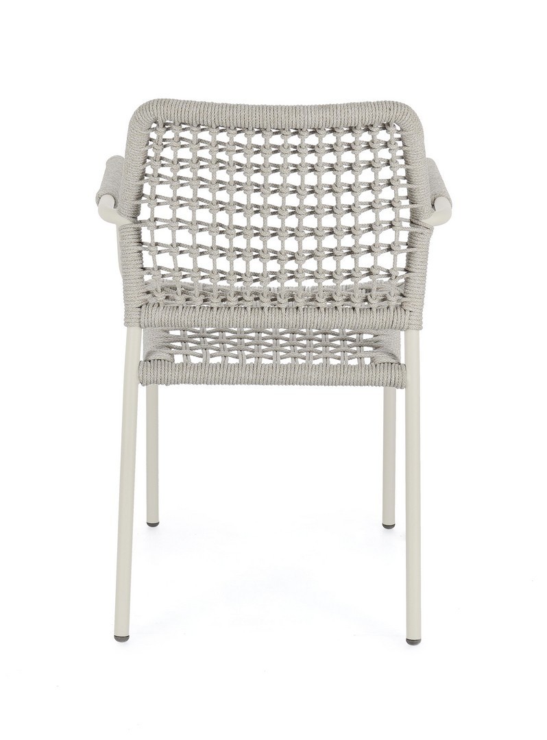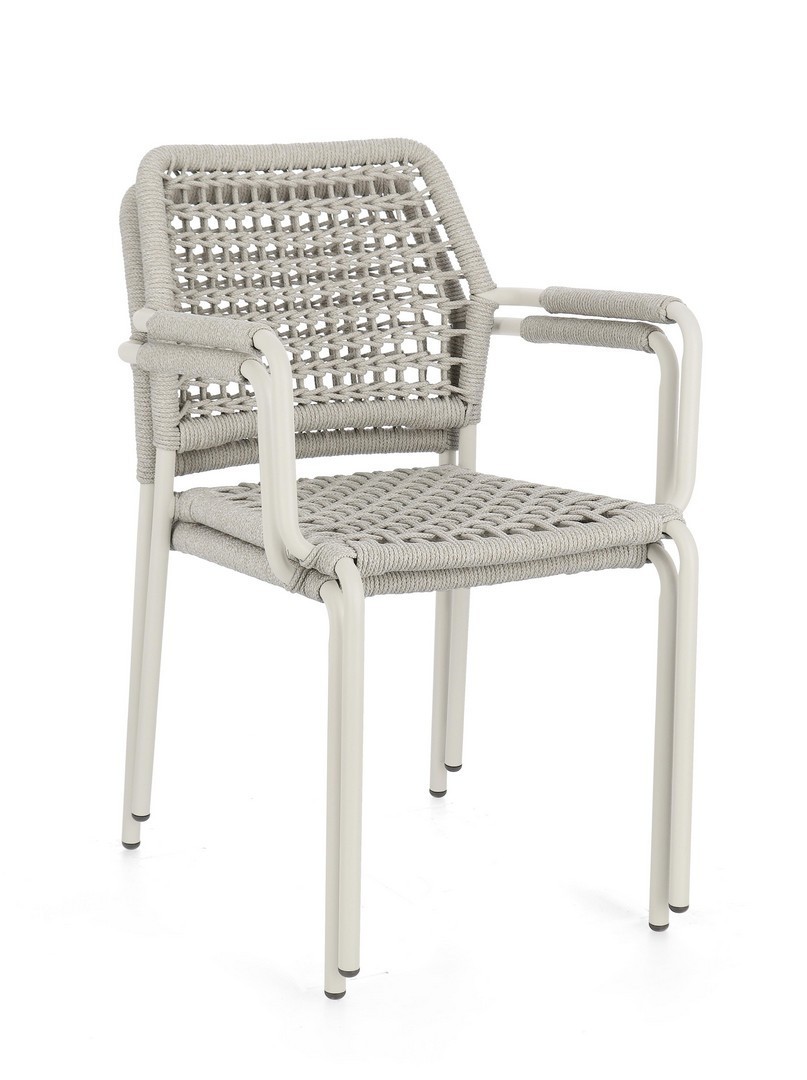 STRUTTURA IN ALLUMINIO VERNICIATA A POLVERE (POLIESTERE). INTRECCIO PER ESTERNO IN CORDA POLIESTERE. IMPILABILE.