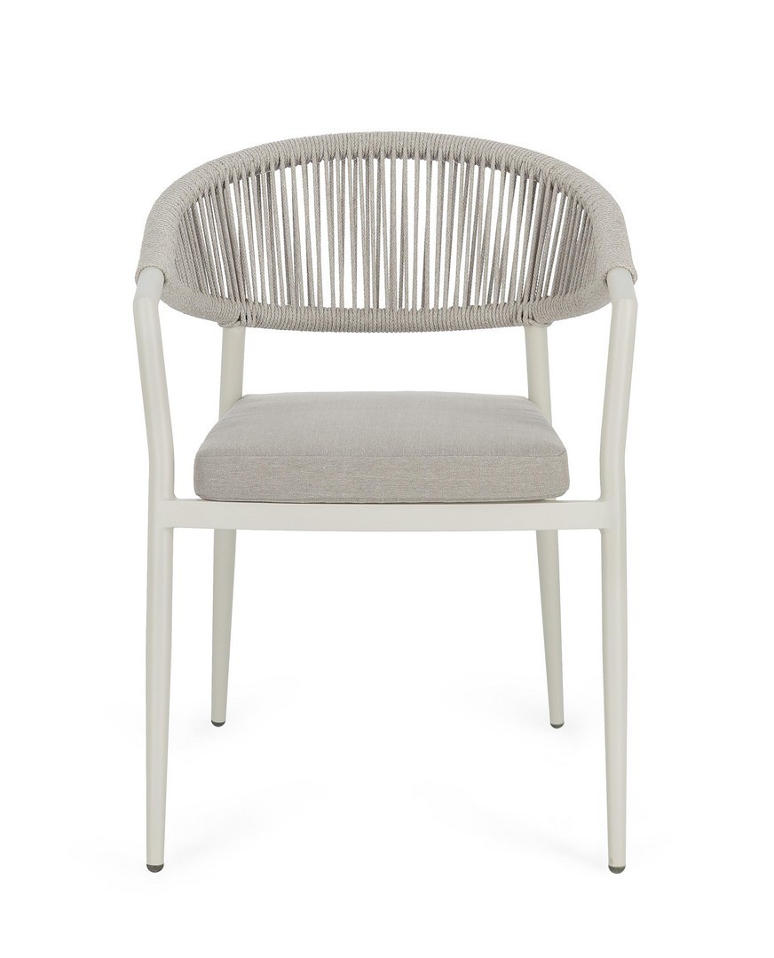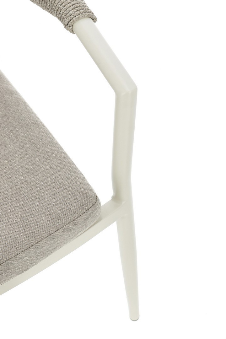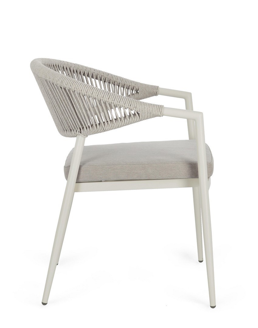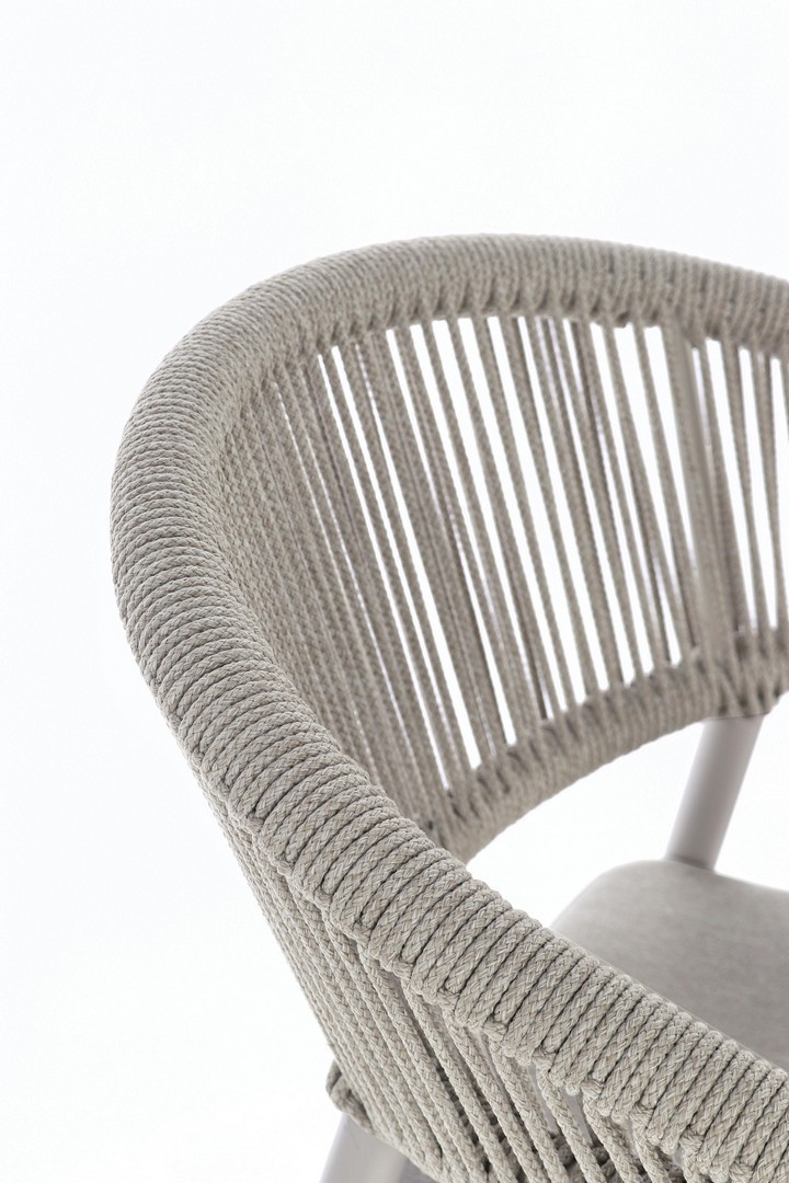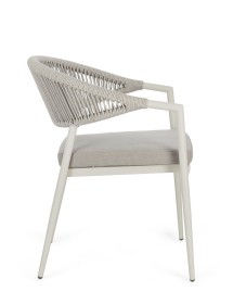 STRUTTURA IN ALLUMINIO VERNICIATA A POLVERE (POLIESTERE). INTRECCIO PER ESTERNO IN CORDA POLIESTERE. CUSCINI SFODERABILI IN TESSUTO IDROREPELLENTE 100% POLIESTERE. IMPILABILE.