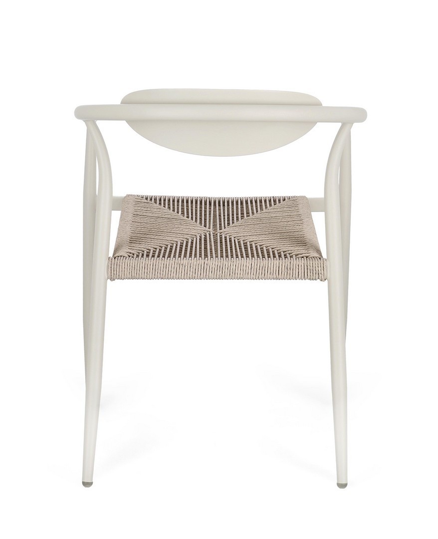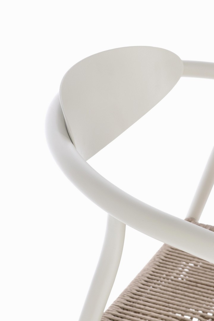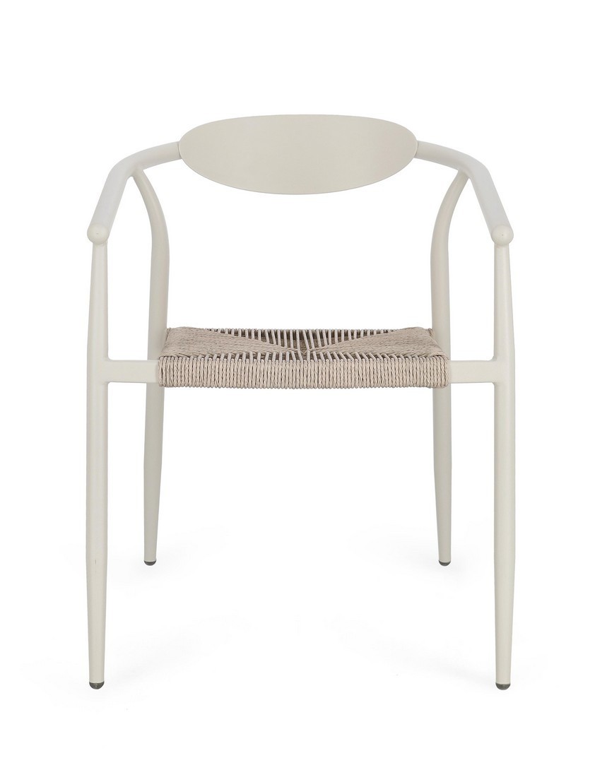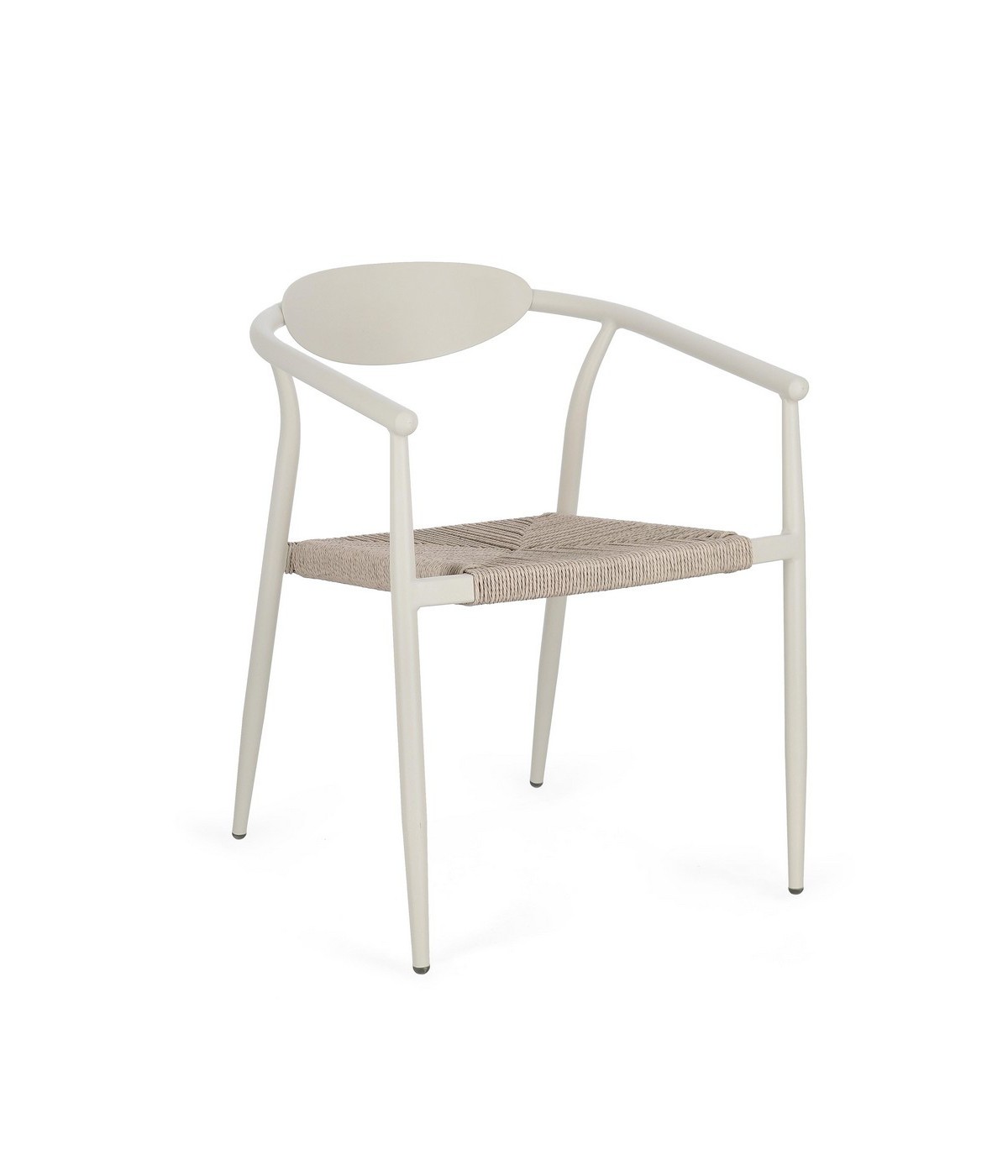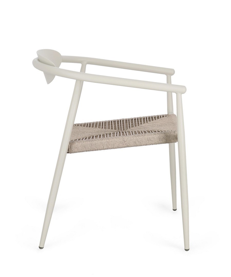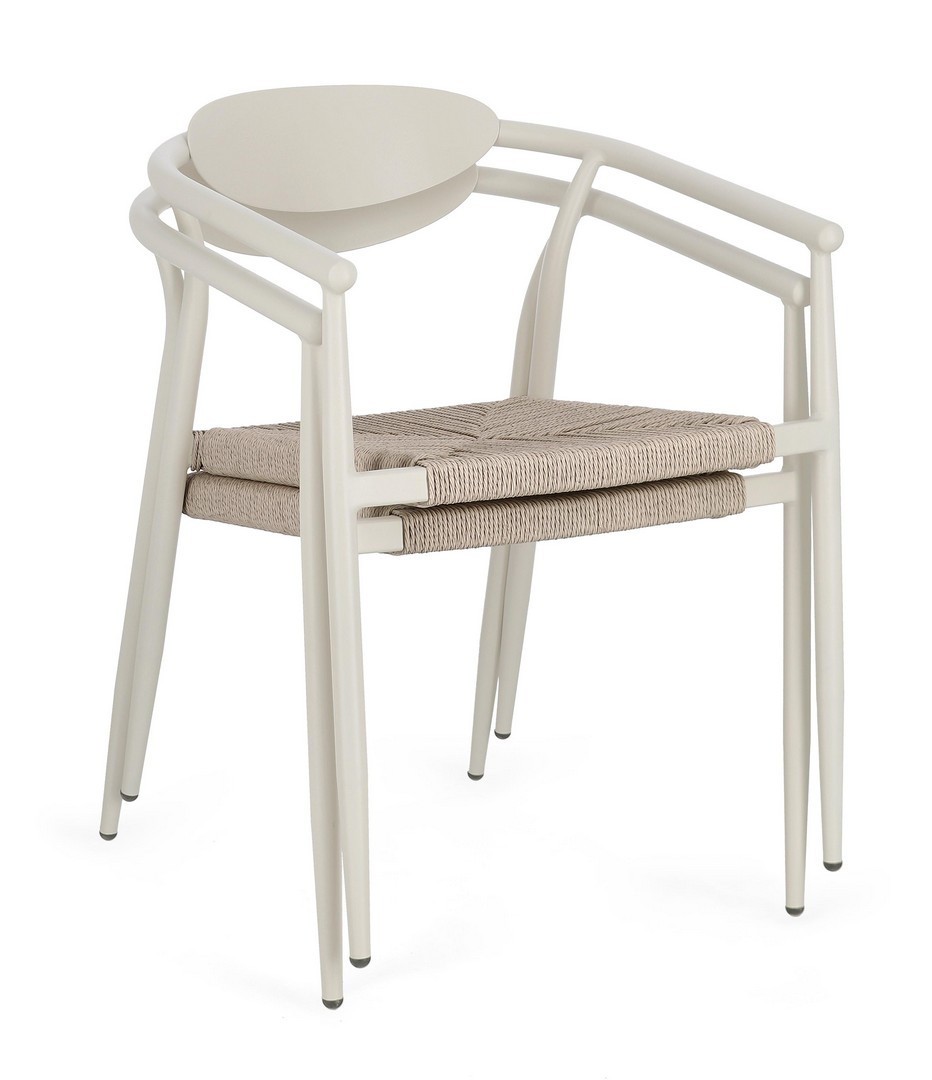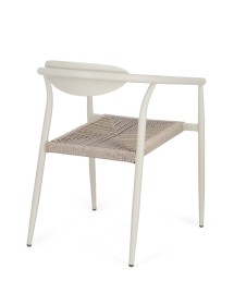 STRUTTURA IN ALLUMINIO VERNICIATA A POLVERE (POLIESTERE). SEDUTA IN FIBRA SINTETICA. IMPILABILE. IMBALLO SENZA CARTONE.