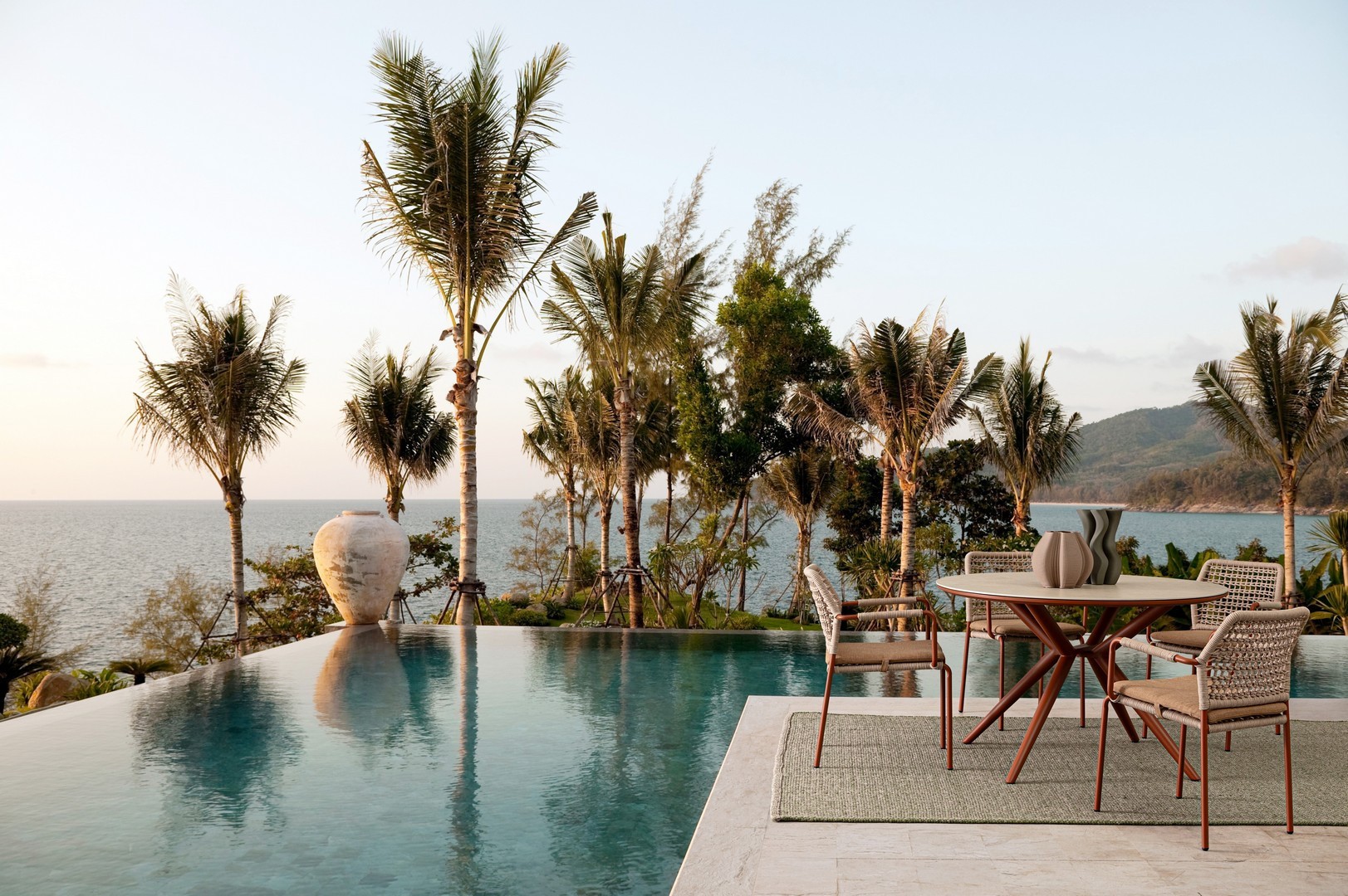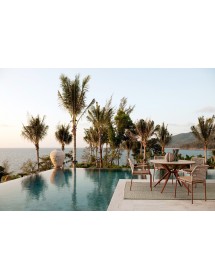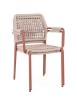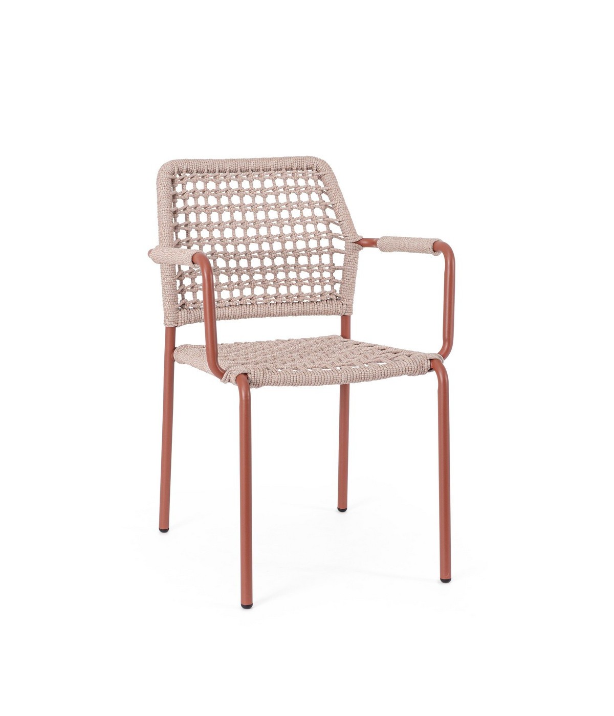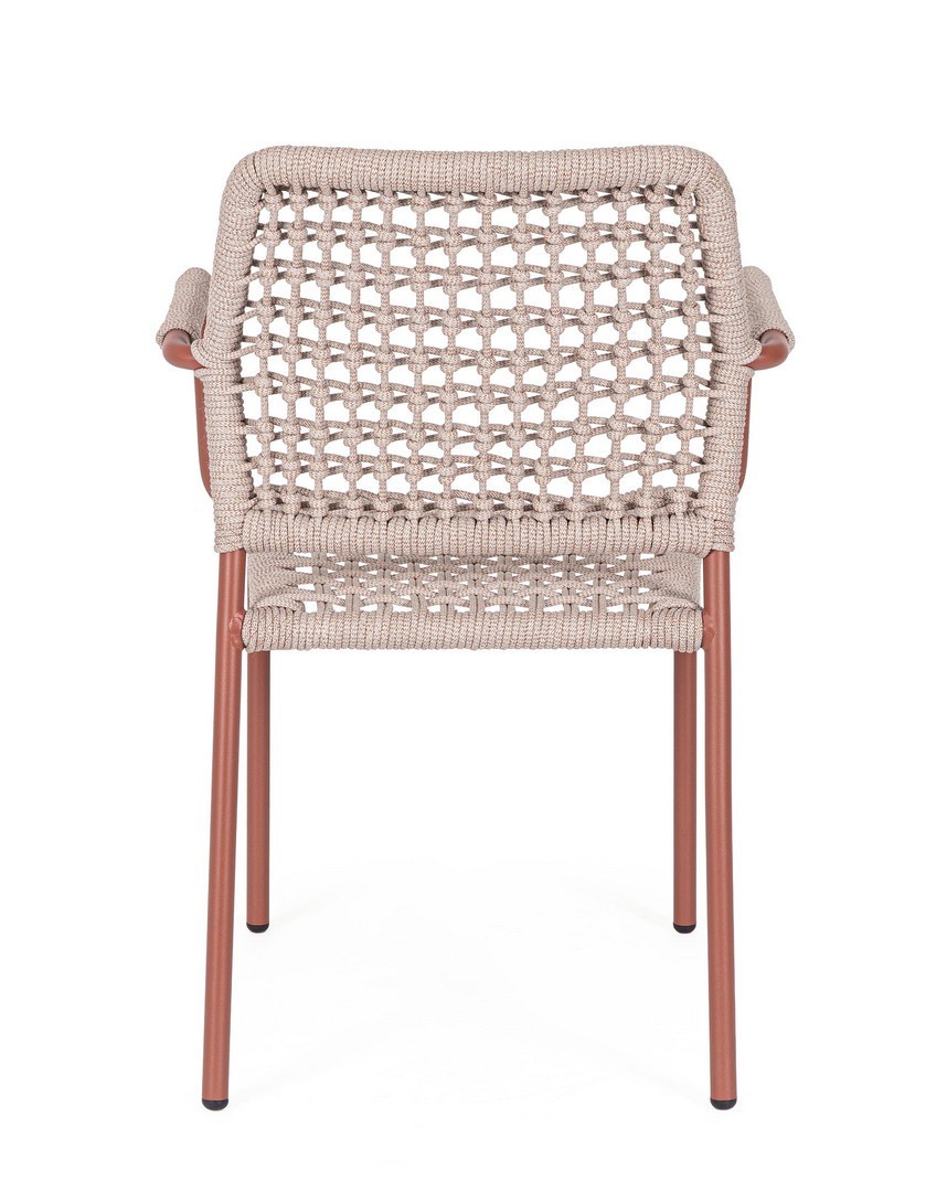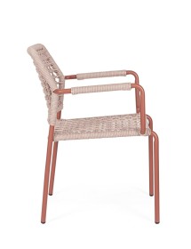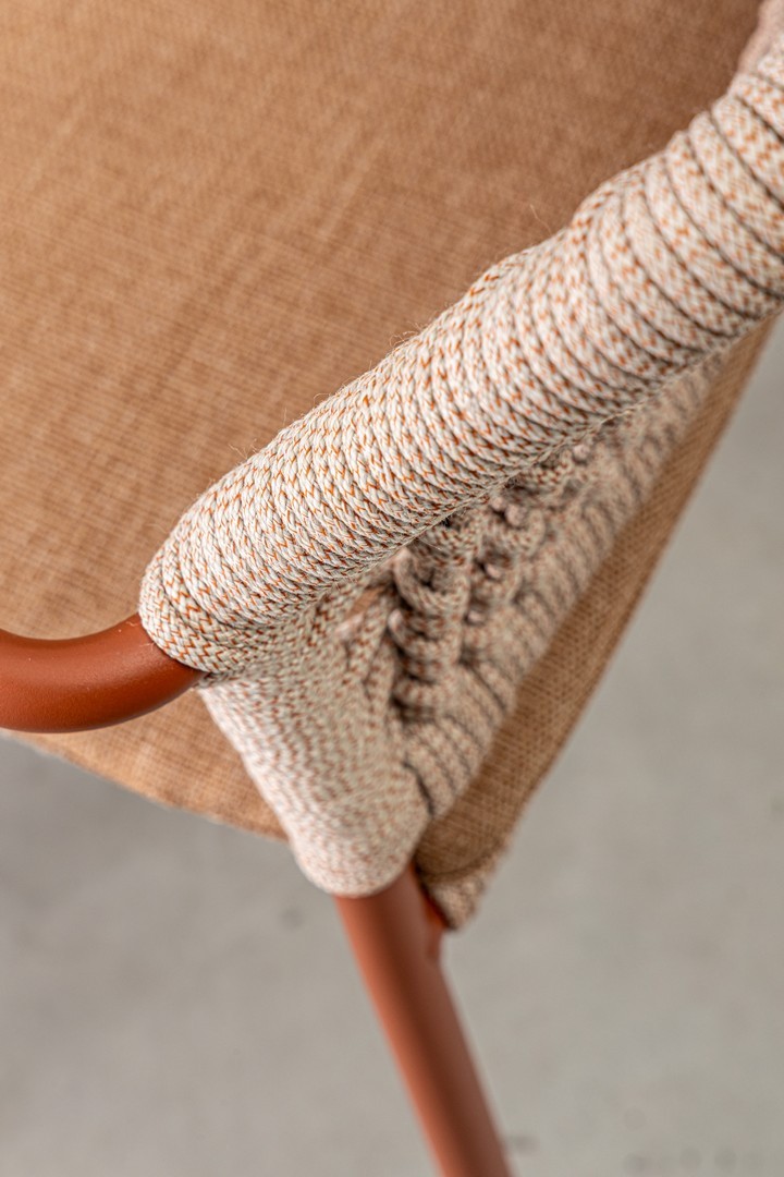 STRUTTURA IN ALLUMINIO VERNICIATA A POLVERE (POLIESTERE). INTRECCIO PER ESTERNO IN CORDA POLIESTERE. IMPILABILE. IMBALLO SENZA CARTONE.