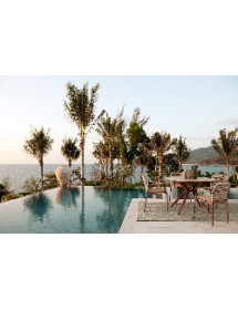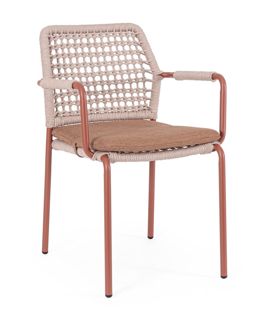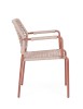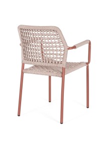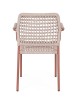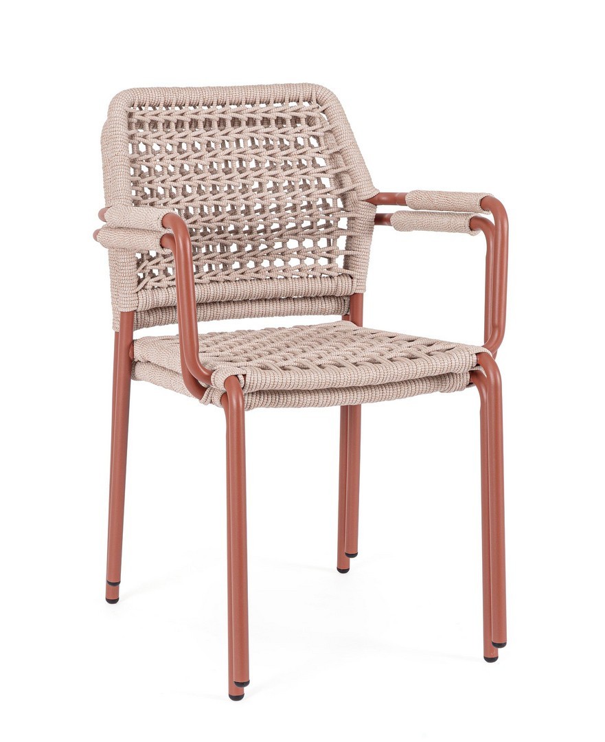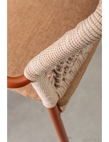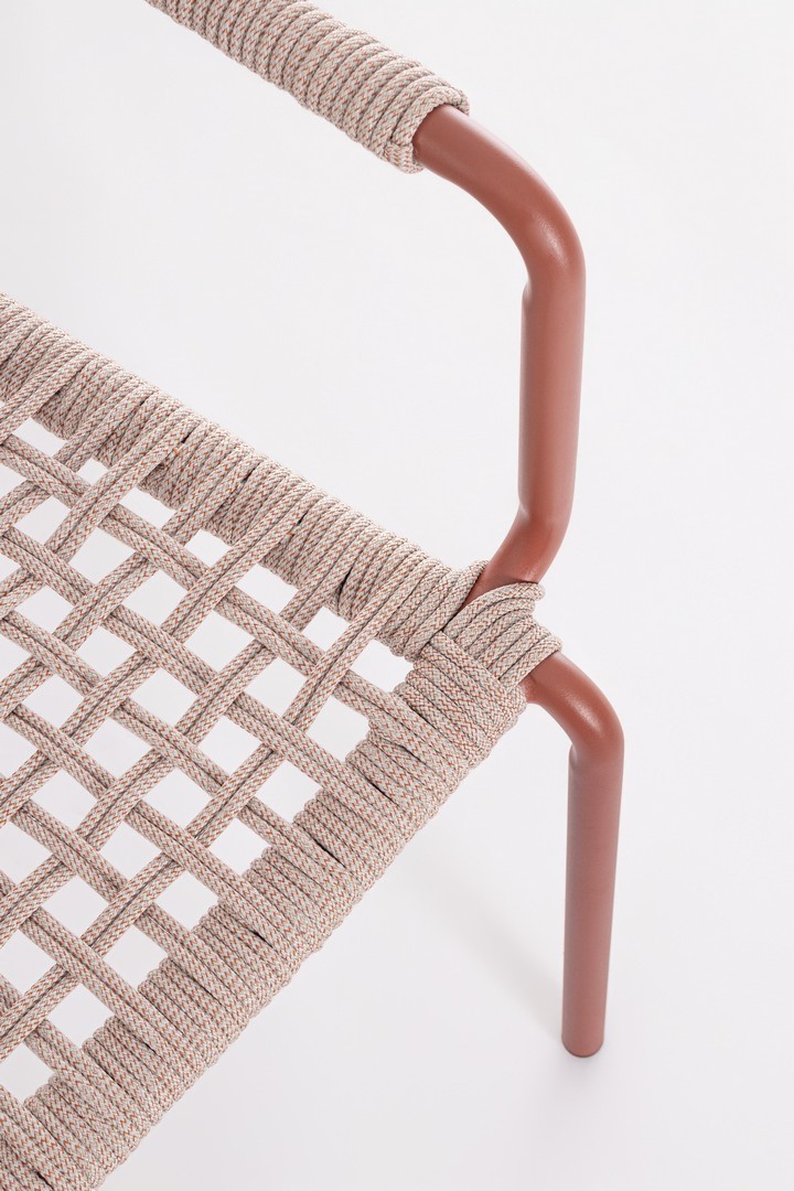 STRUTTURA IN ALLUMINIO VERNICIATA A POLVERE (POLIESTERE). INTRECCIO PER ESTERNO IN CORDA POLIESTERE. IMPILABILE.