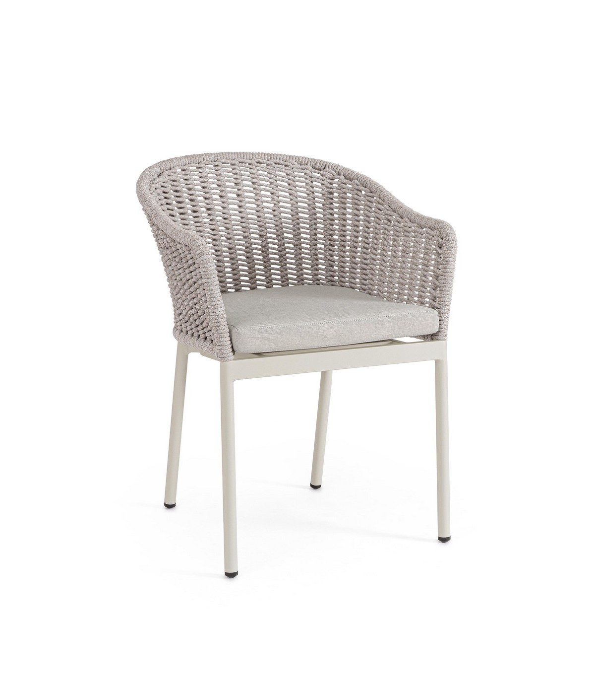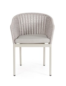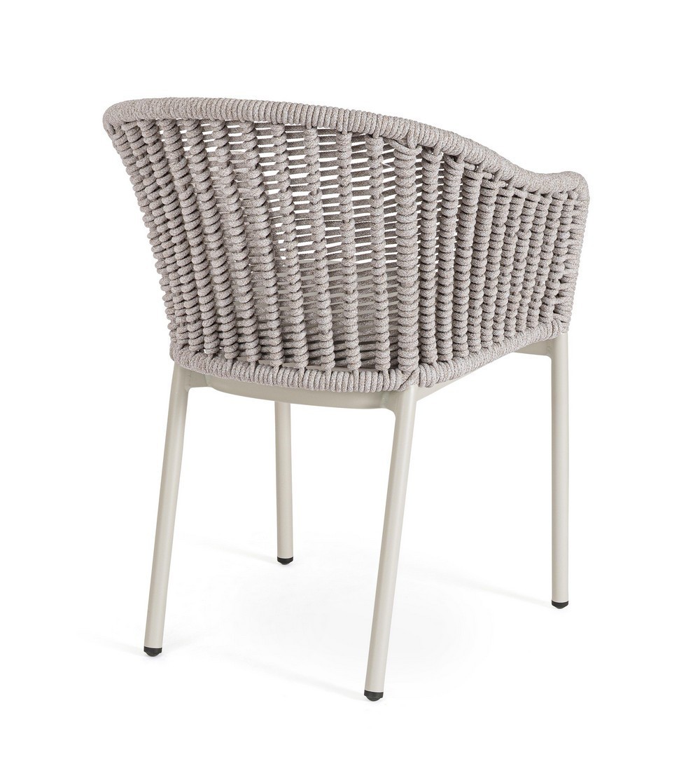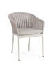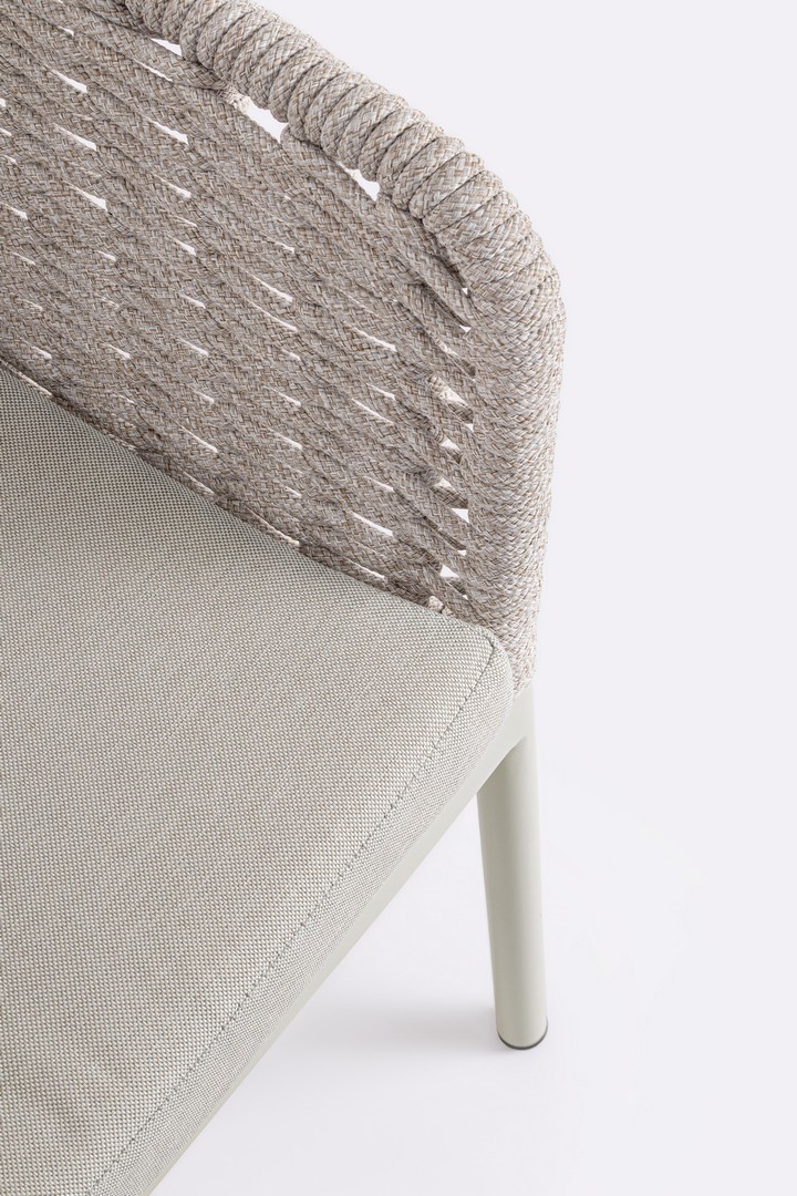 STRUTTURA IN ALLUMINIO VERNICIATA A POLVERE (POLIESTERE). INTRECCIO PER ESTERNO IN CORDA POLIESTERE. CUSCINI SFODERABILI IN TESSUTO IDROREPELLENTE OLEFIN (100% POLIPROPILENE). IMPILABILE.