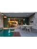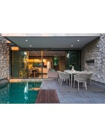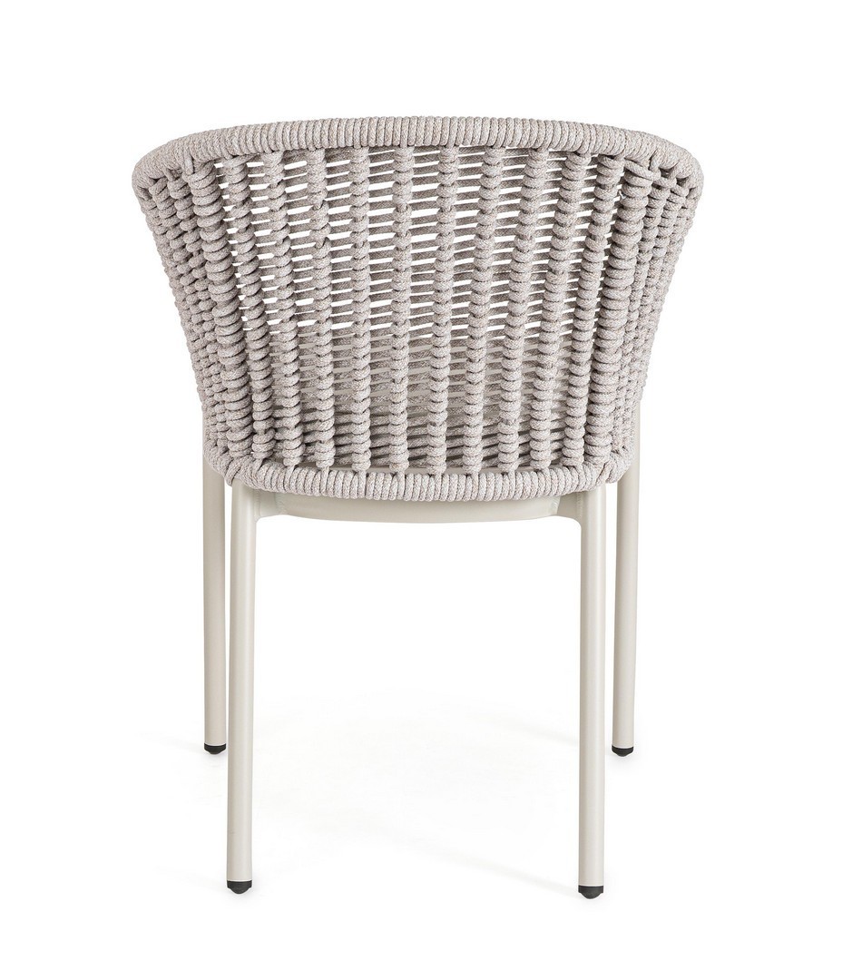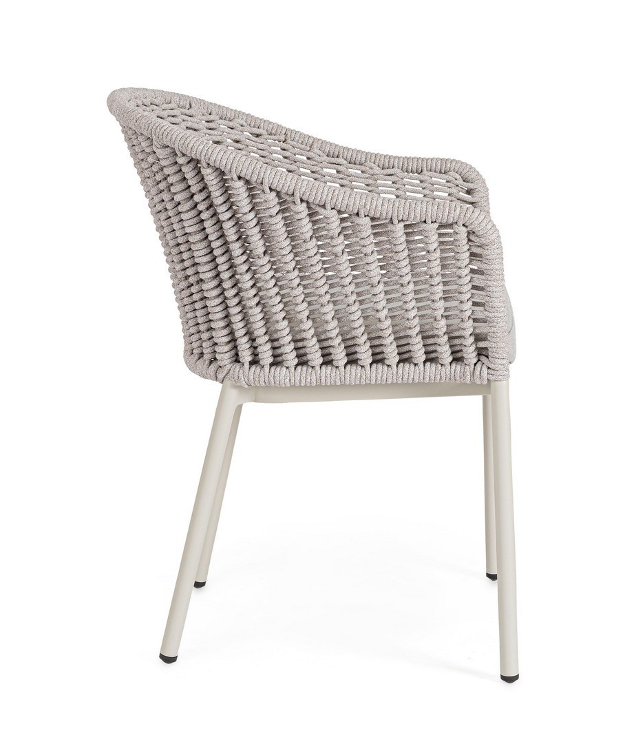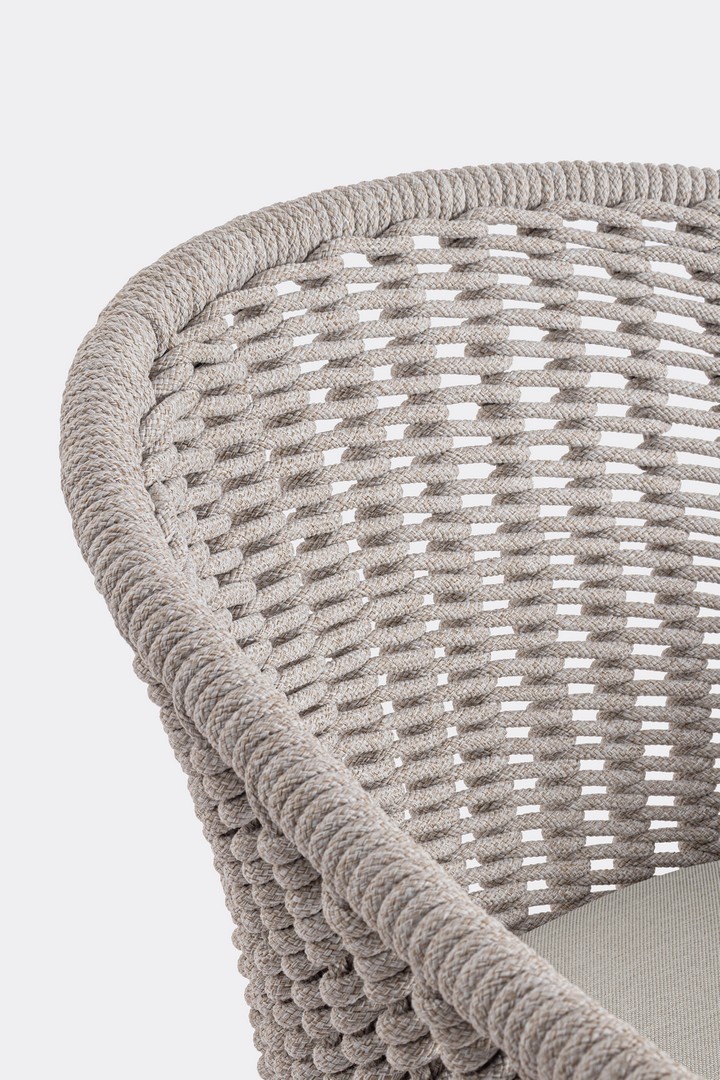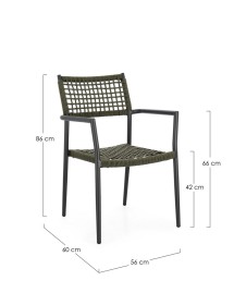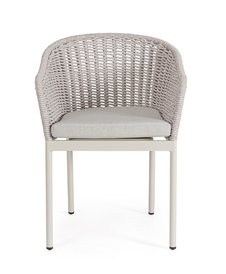 STRUTTURA IN ALLUMINIO VERNICIATA A POLVERE (POLIESTERE). INTRECCIO PER ESTERNO IN CORDA POLIESTERE. CUSCINI SFODERABILI IN TESSUTO IDROREPELLENTE OLEFIN (100% POLIPROPILENE). IMPILABILE.