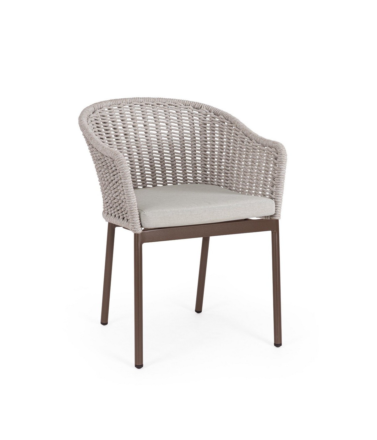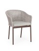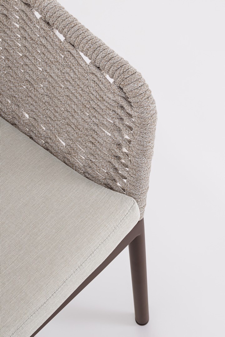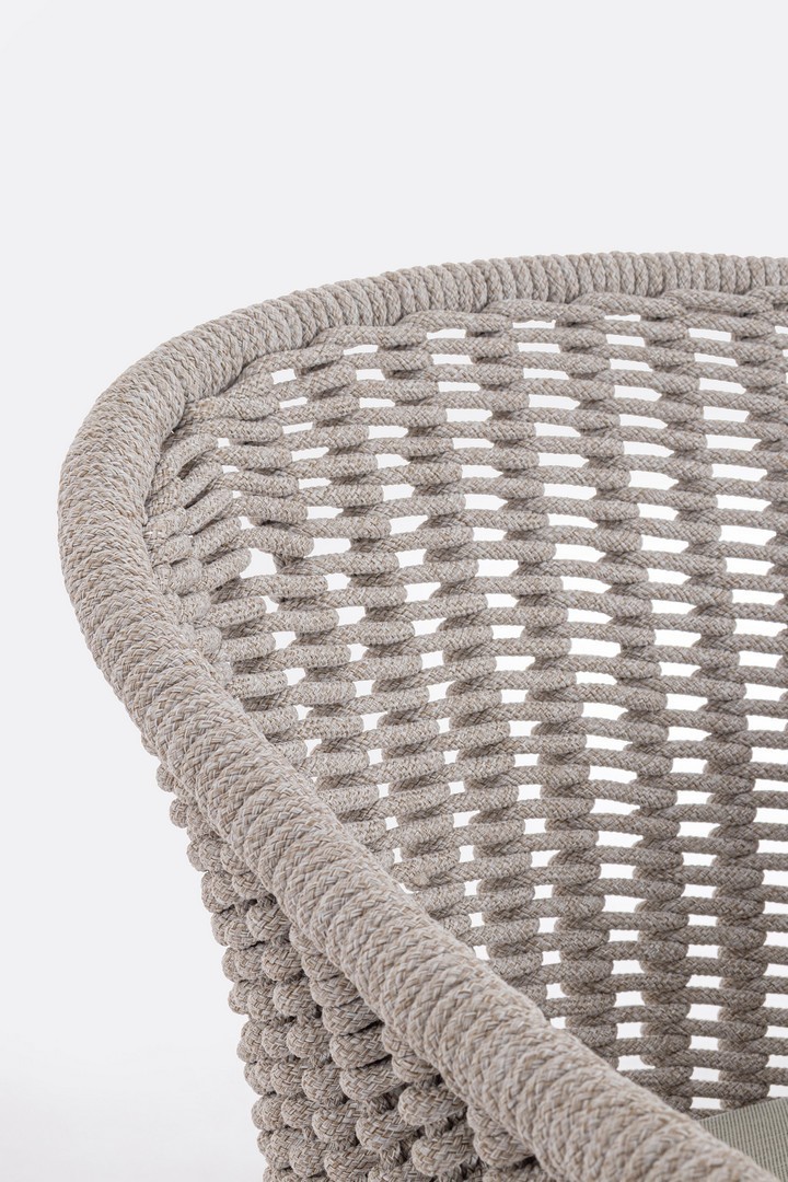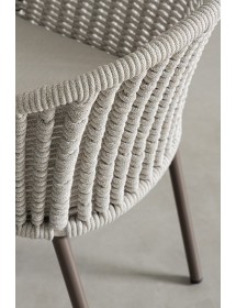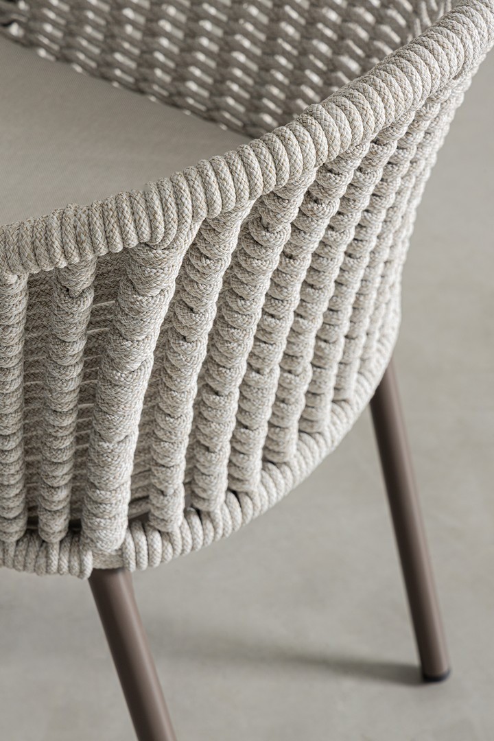 STRUTTURA IN ALLUMINIO VERNICIATA A POLVERE (POLIESTERE). INTRECCIO PER ESTERNO IN CORDA POLIESTERE. CUSCINI SFODERABILI IN TESSUTO IDROREPELLENTE OLEFIN (100% POLIPROPILENE). IMPILABILE.