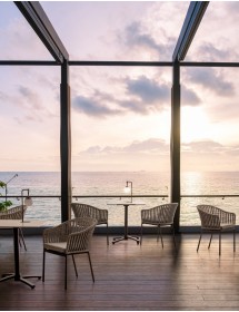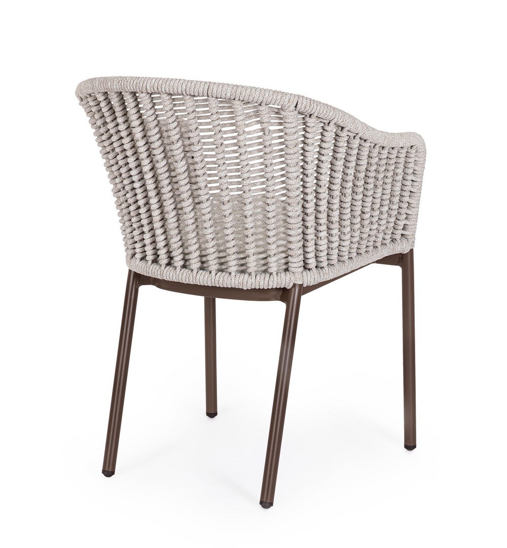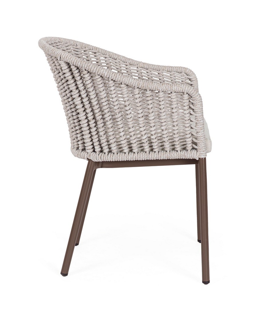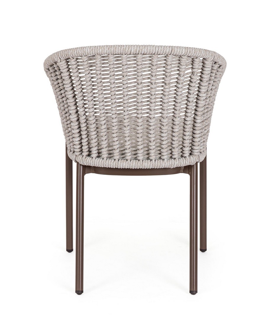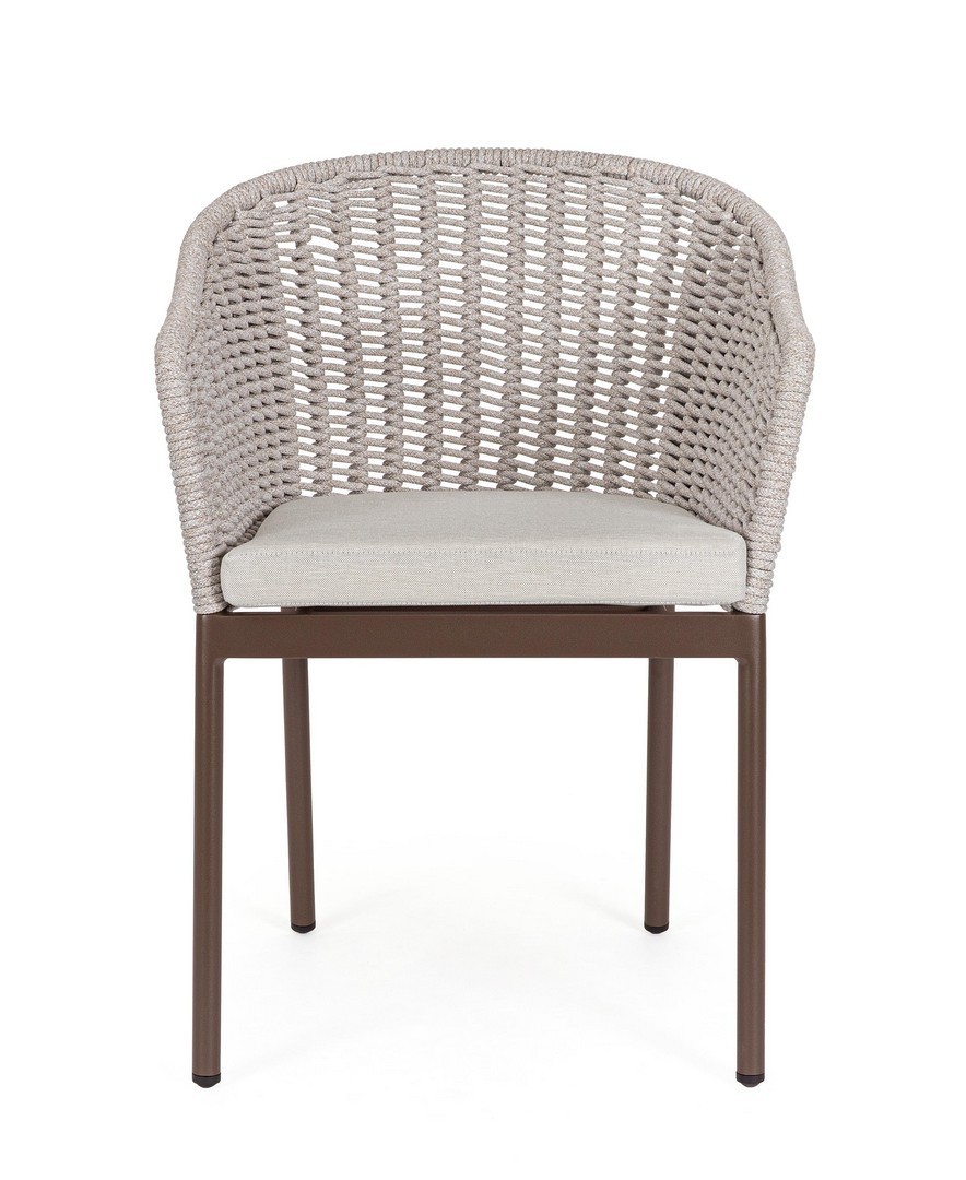 STRUTTURA IN ALLUMINIO VERNICIATA A POLVERE (POLIESTERE). INTRECCIO PER ESTERNO IN CORDA POLIESTERE. CUSCINI SFODERABILI IN TESSUTO IDROREPELLENTE OLEFIN (100% POLIPROPILENE). IMPILABILE.