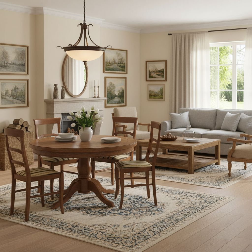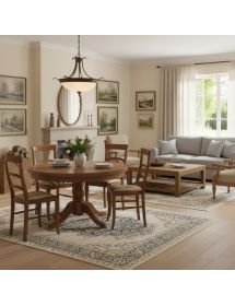 Lo stile si caratterizza per l'abbinamento del legno ed altre fibre naturali. Per la nostra abbiamo scelto la seduta imbottita, per la sua comodità e per un contrasto più classico.