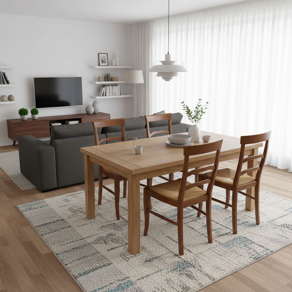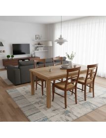 Lo stile si caratterizza per l'abbinamento del legno ed altre fibre naturali. Per la nostra abbiamo scelto la seduta in paglia naturale, per la sua comodità e per un contrasto più classico.