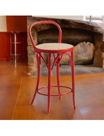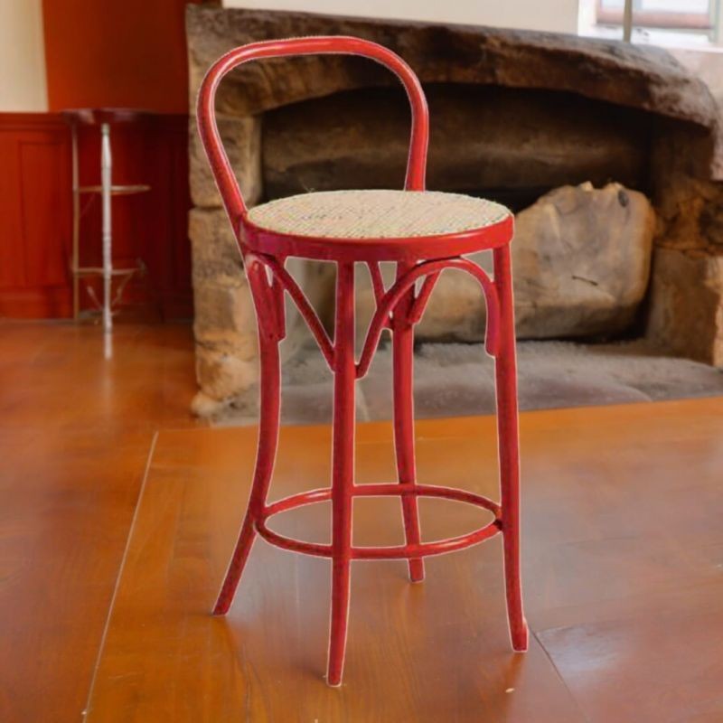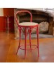 Sgabello bistrot legno laccato rosso seduta rattan 36x40x87