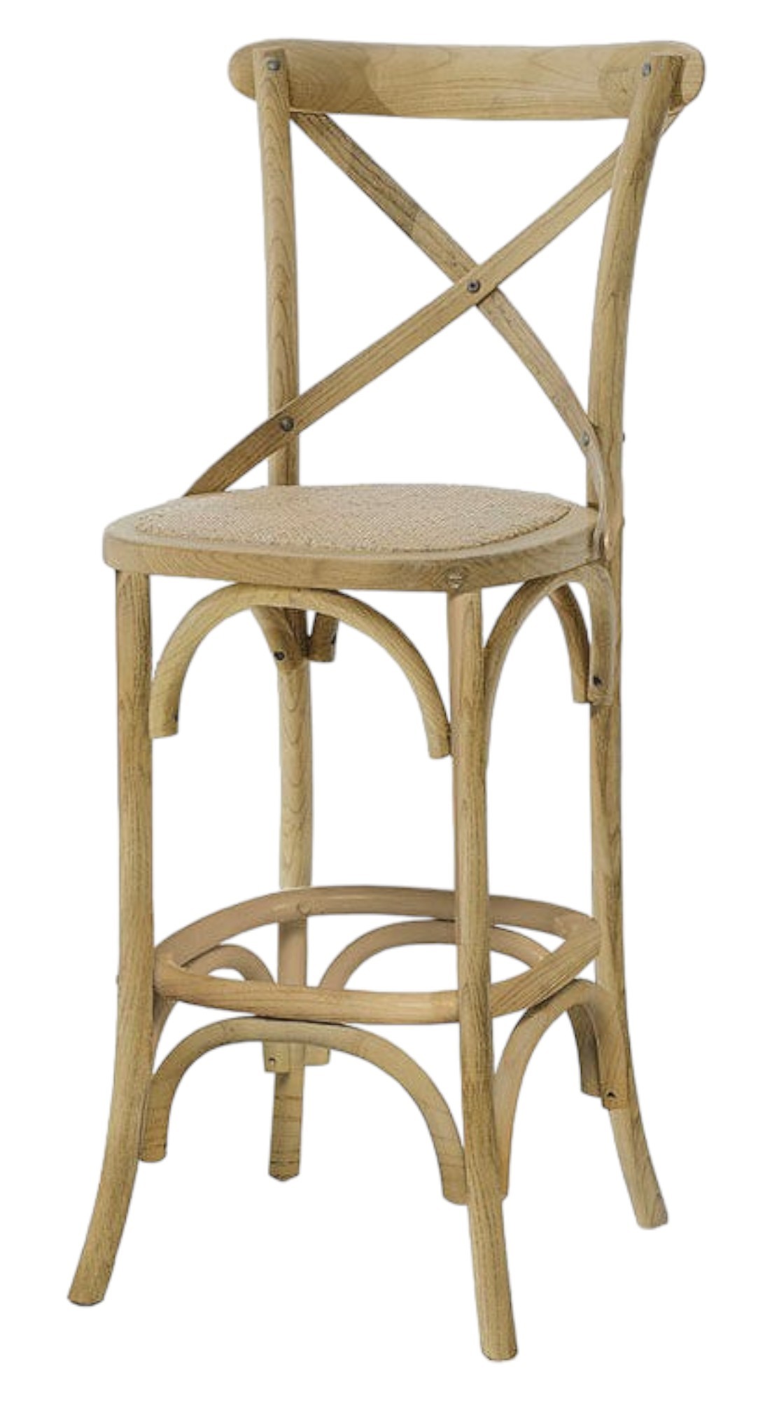 Sgabello Cross Bistrot Shabby Vintage Legno Olmo Seduta Rivestita Rattan Naturale 50x55x116