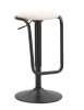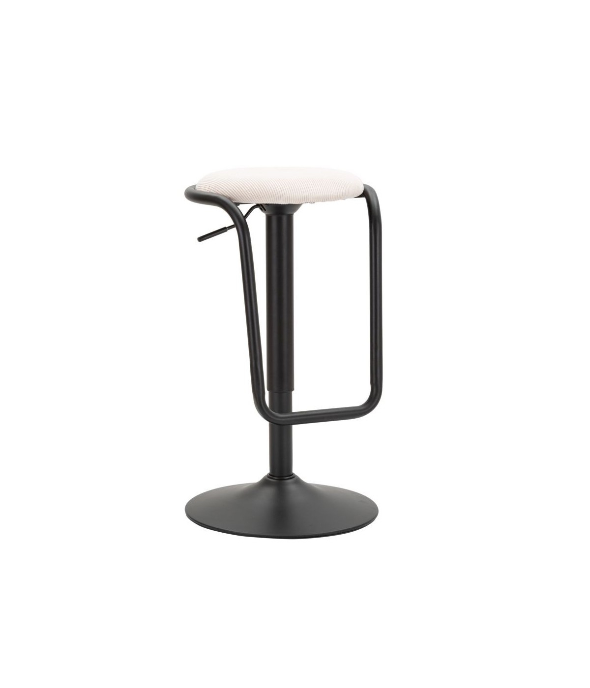 Sgabello bar rotondo girevole in metallo e tessuto imbottito. Completo di regolatore d'altezza. Il design semplice richiama gli anni '70.