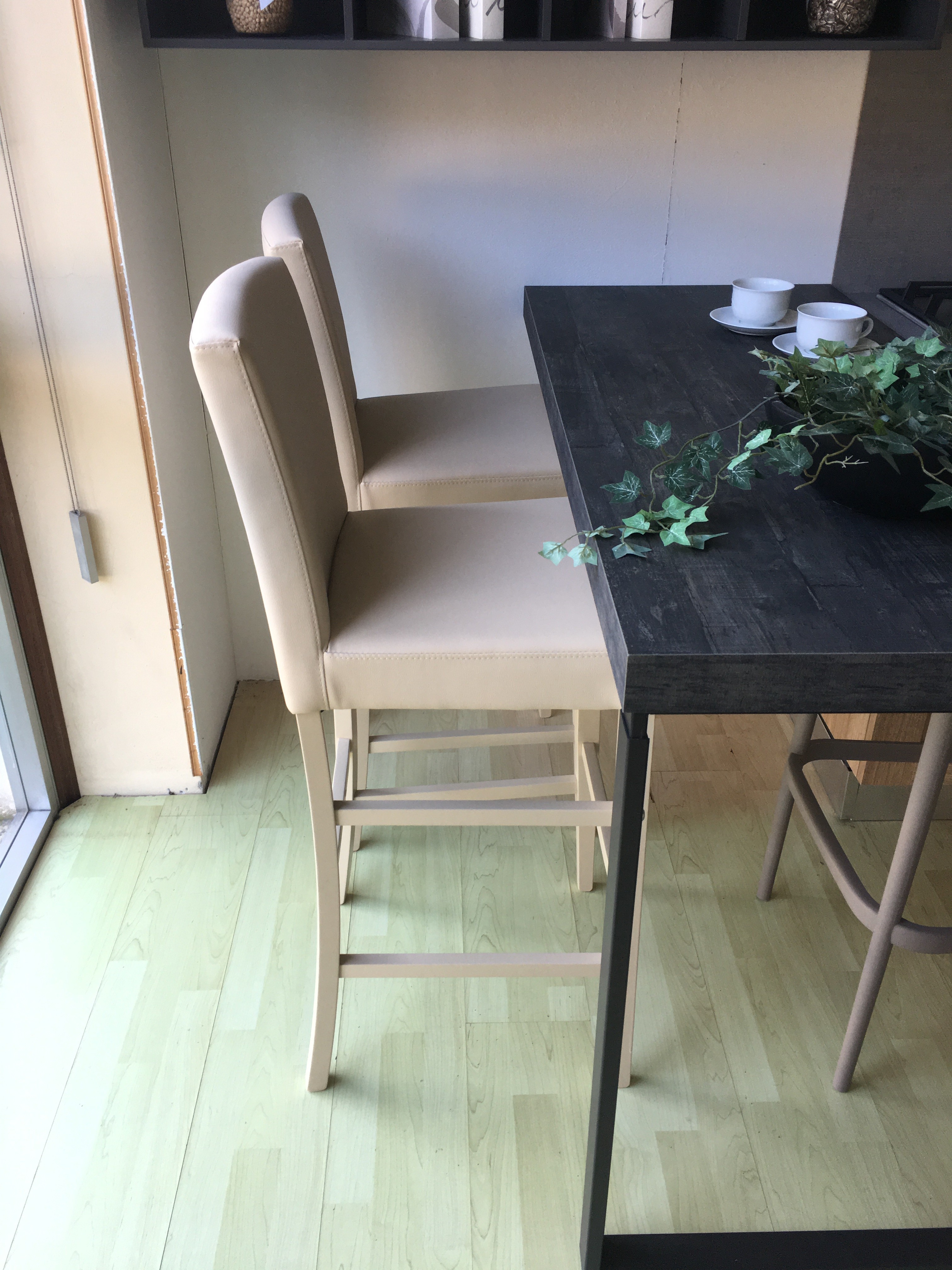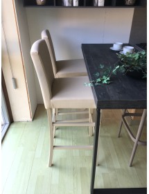 SET 2 SGABELLI IMBOTTITI IN ECOPELLE BEIGE E GAMBE IN FAGGIO LACCATO BEIGE L.45 H.108/75 P.45