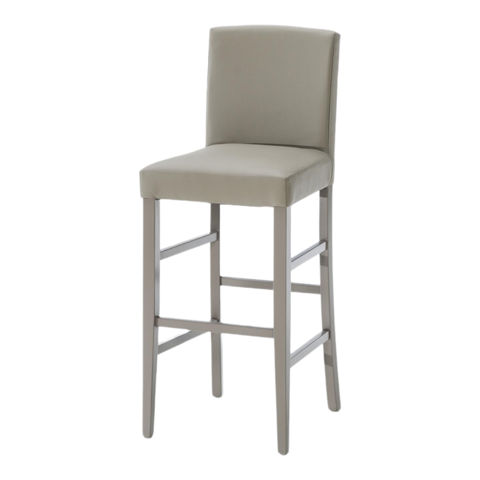 SET 2 SGABELLI IMBOTTITI IN ECOPELLE TORTORA E GAMBE IN FAGGIO LACCATO TORTORA L.45 H.108/75 P.45