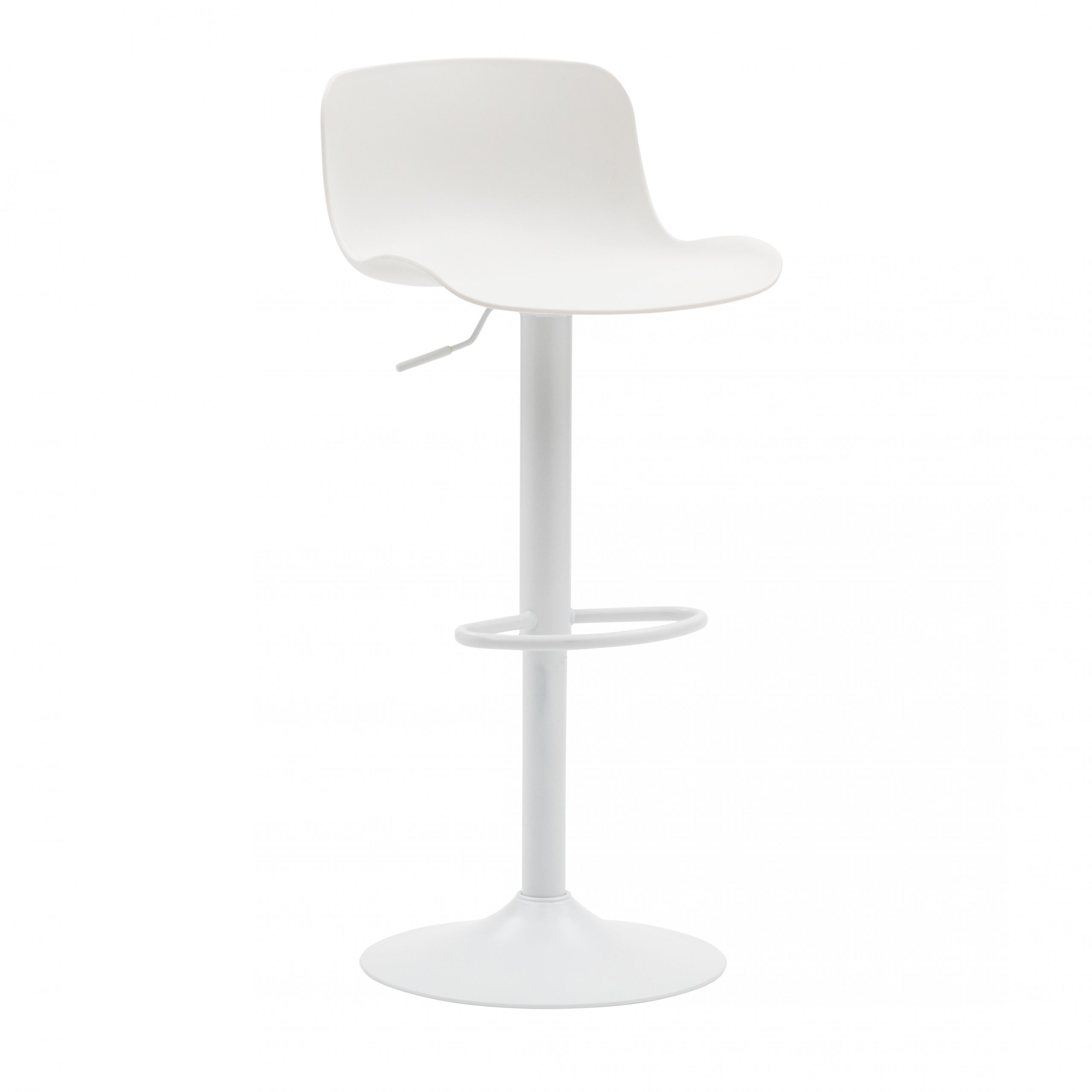 Set di sgabelli bianchi in polipropilene e regolabili in altezza. Un prodotto dal design unico.