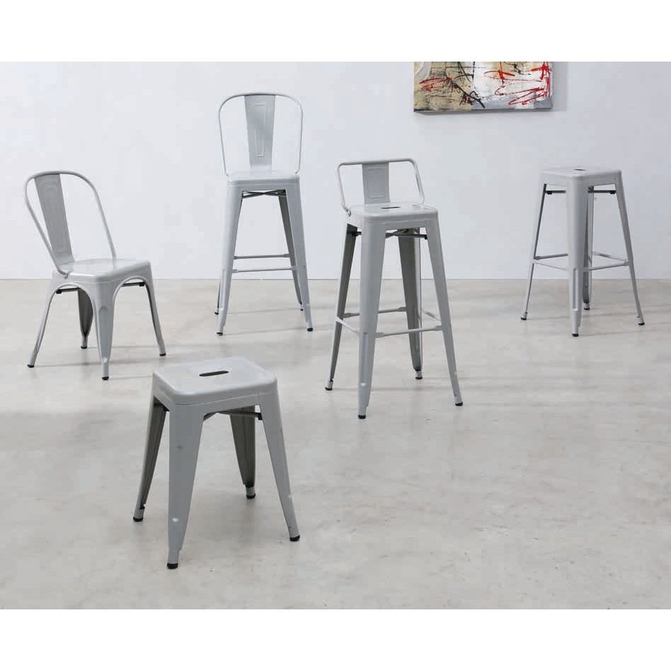 SET DA 4 Sgabelli moderni metallo grigio metallizzato 45x43x120
