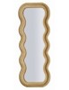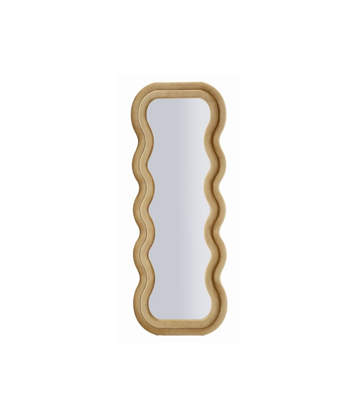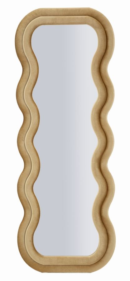 Specchio da parete con cornice ondulata rivestita in velluto dorato. Elegante e originale, dona luce e carattere a ogni ambiente.