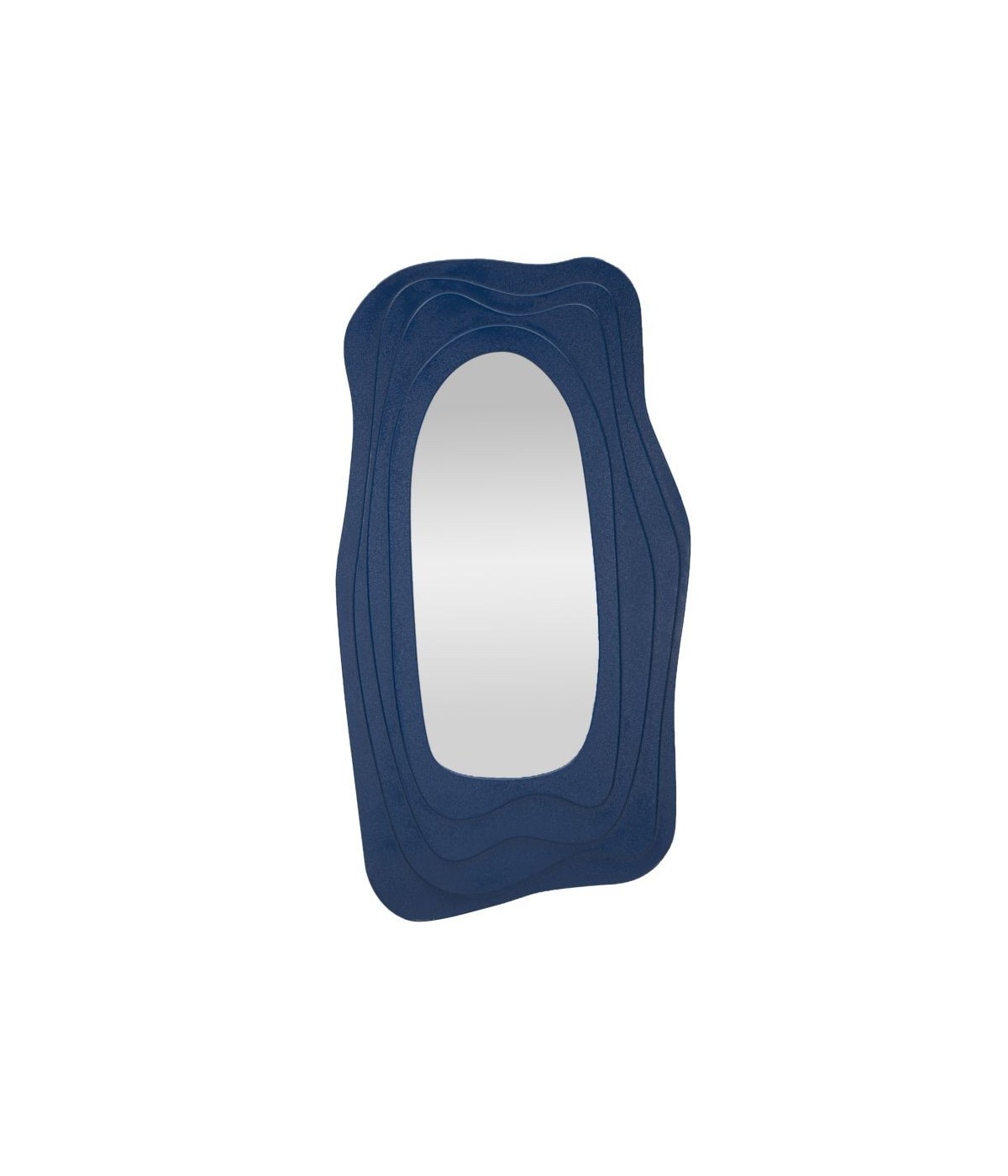 Specchio da parete blu dalle forme sinuose, perfetto per dare un tocco moderno a qualsiasi ambiente. Ideale per aggiungere un tocco di creatività e stile alle pareti di casa tua.