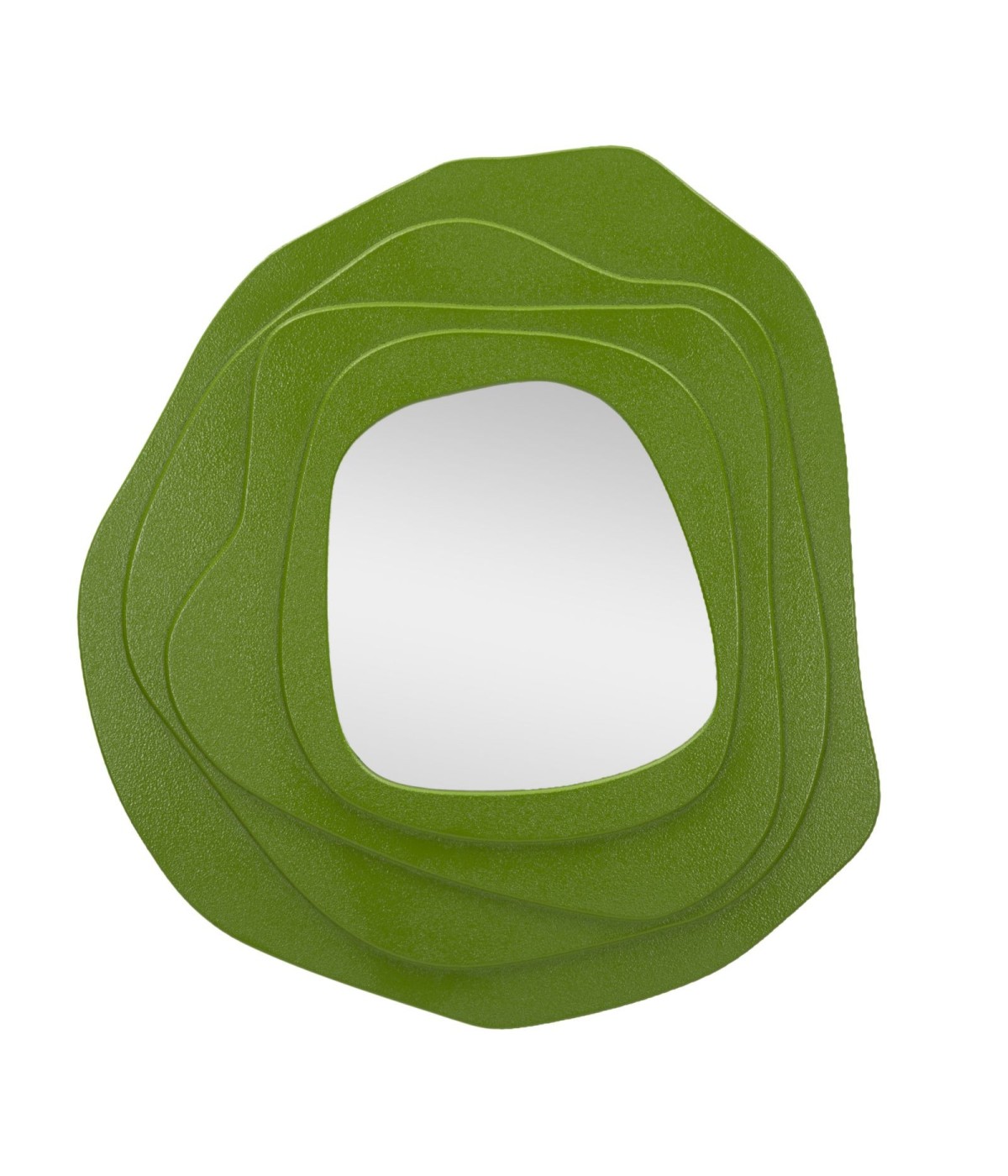 Specchio da parete verde dalle forme sinuose, perfetto per dare un tocco moderno a qualsiasi ambiente. Ideale per aggiungere un tocco di creatività e stile alle pareti di casa tua.