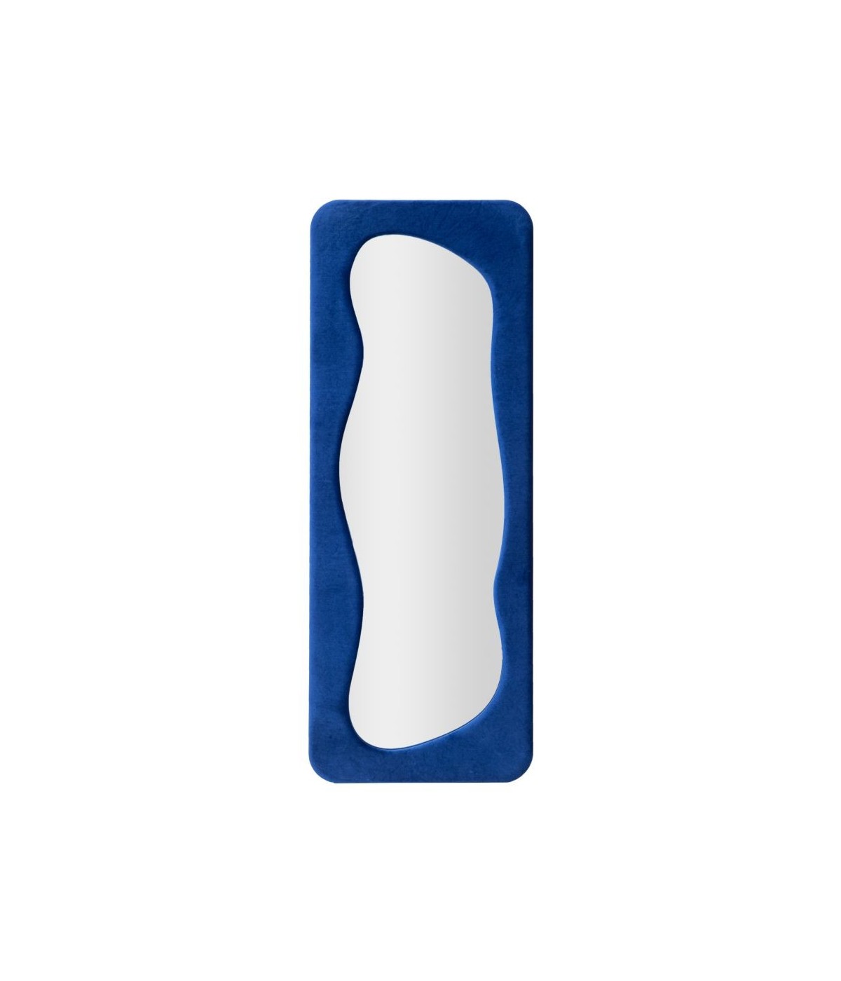 Specchio da parete con cornice in legno rivestita in velluto blu elettrico, ideale per un tocco chic e vintage nell'arredamento domestico o in ambienti dal design raffinato.