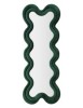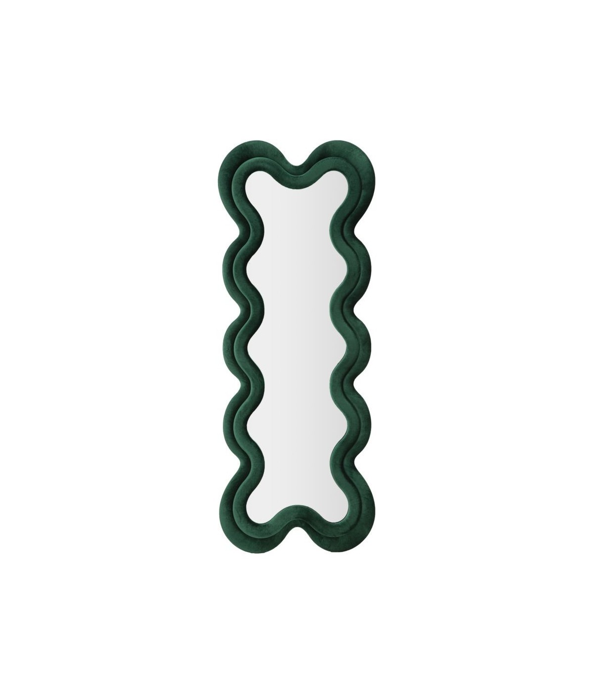 Specchio da parete con cornice in legno rivestita in velluto verde, ideale per un tocco chic e vintage nell'arredamento domestico o in ambienti dal design raffinato.