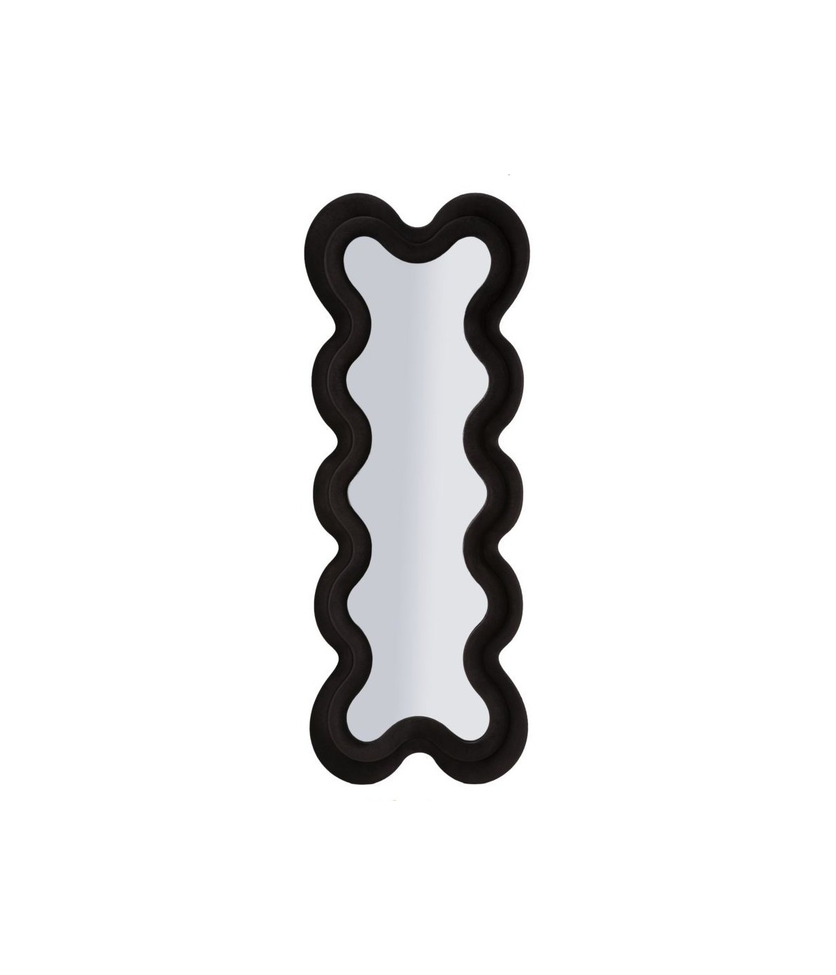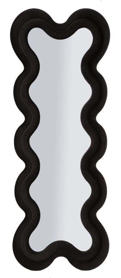 Specchio verticale con cornice sagomata in finitura nera. Linee ondulate e stile deciso per ambienti moderni, minimal o urban.