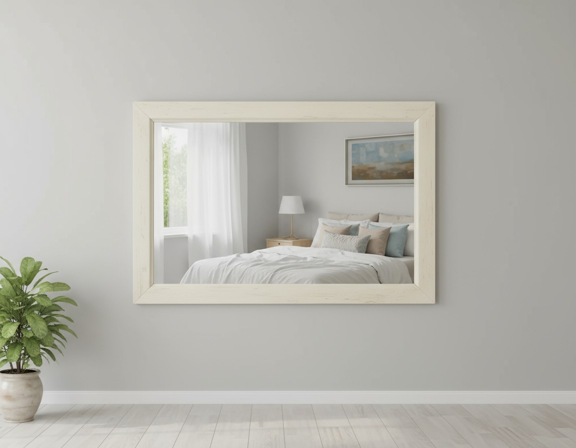 Specchiera rettangolare legno shabby avorio patinato 90x60x3