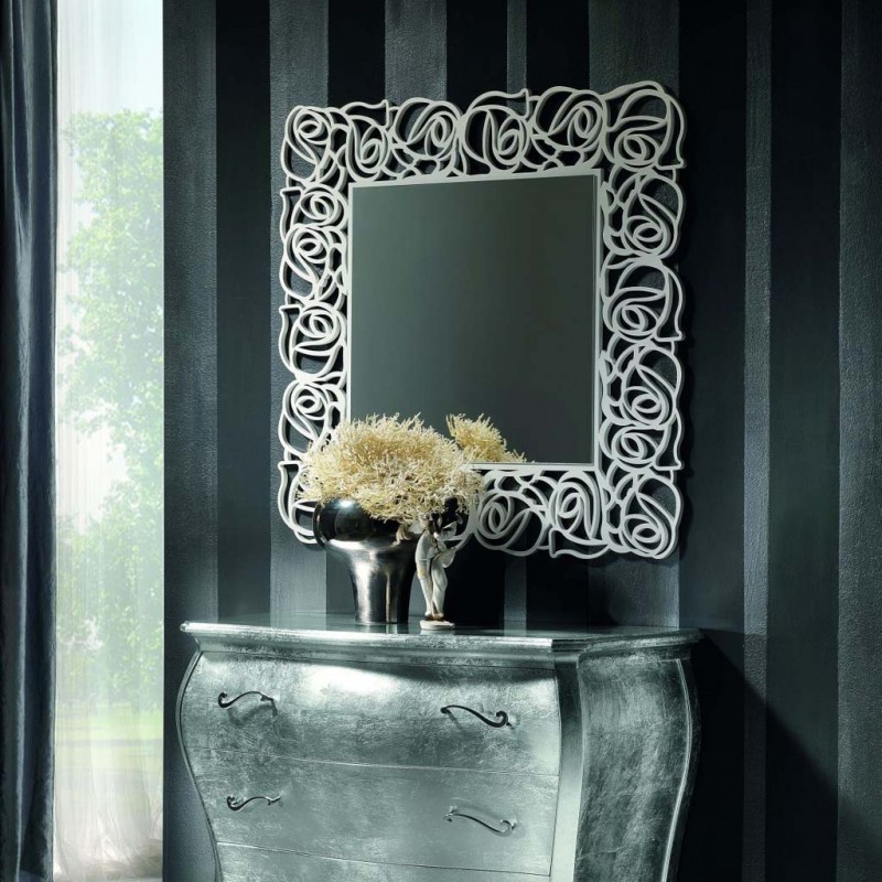 SPECCHIERA QUADRATA LACCATA BIANCA MADREPERLA MISURE L.100X100