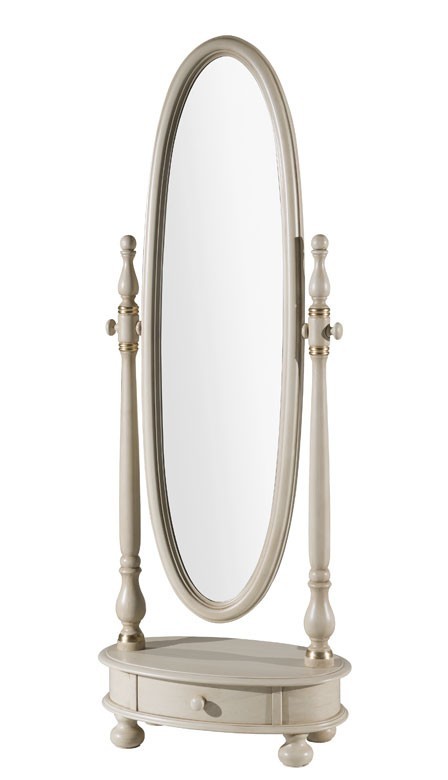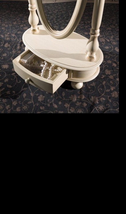 Specchiera girevole ovale laccata avorio con particolari foglia oro Misure: L. 62 x H. 169 x P.37