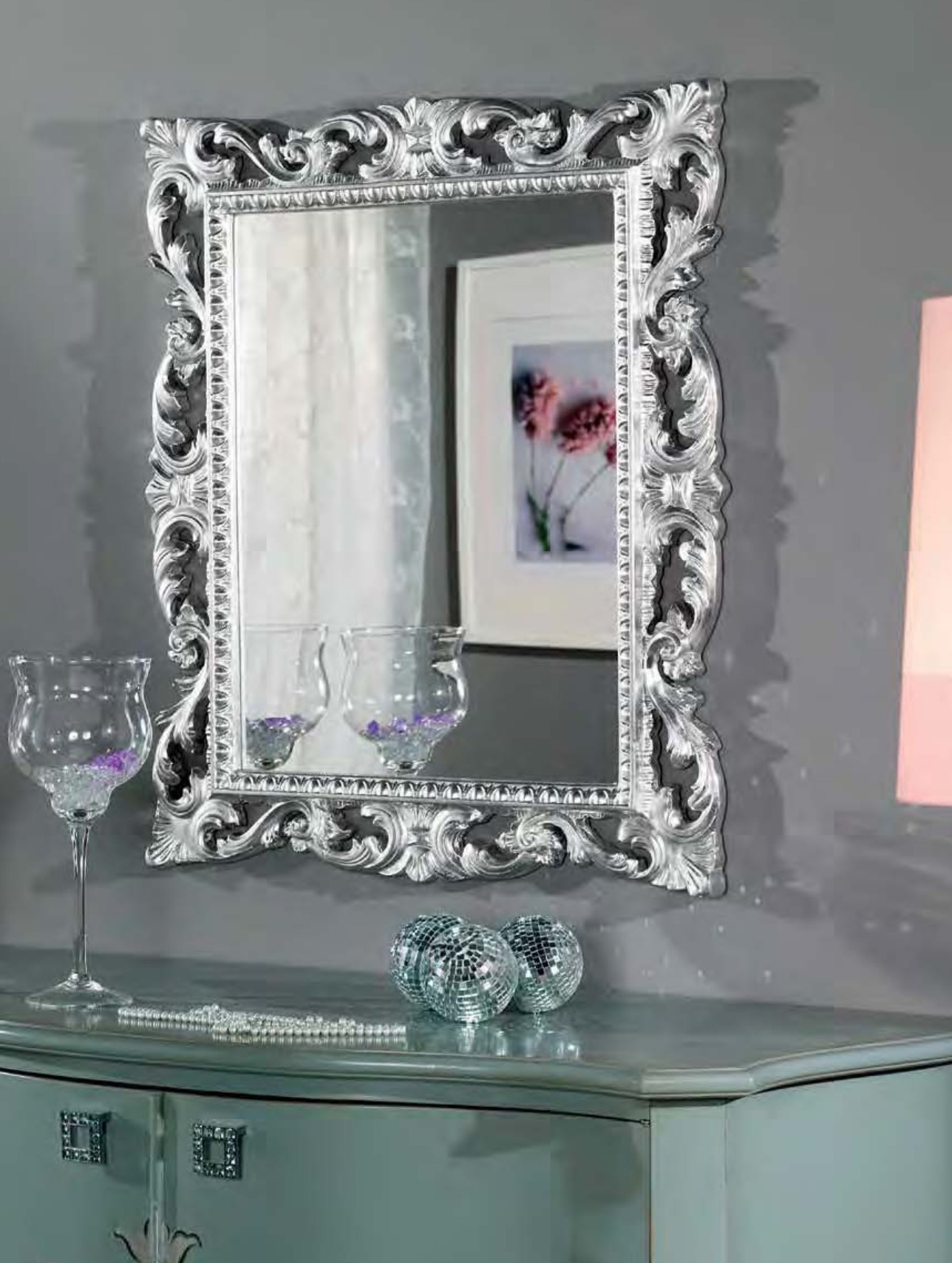 MOBILI2G - Specchiera foglia argento brillante rettangolare- Misure: l.73 x h.86 x p.4