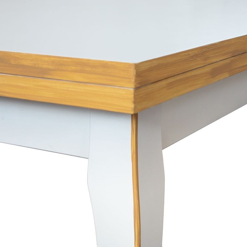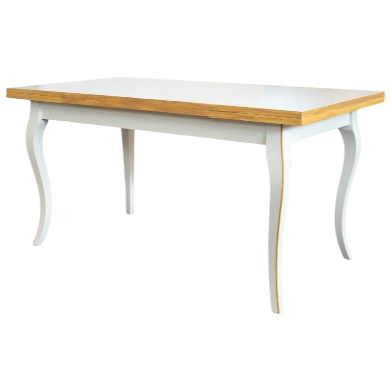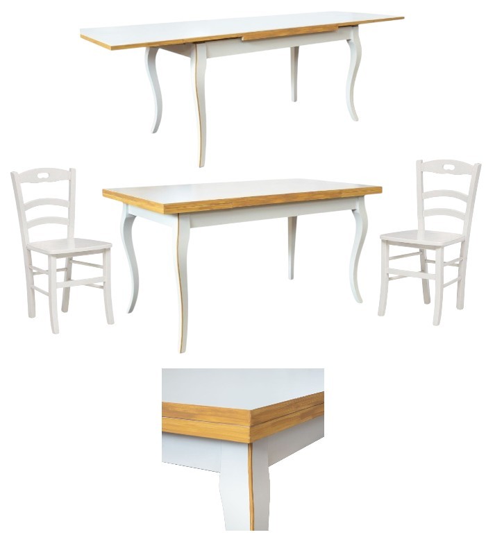 Tavolo costruito in legno massello di pioppo rendendo il mobile solido e robusto. Piano rettangolare con gambe a sciabola, dotato di due allunghe laterali da 40 cm allungabile con apertura laterale da entrambe i lati, detta anche ' apertura a tiro '. Le allunghe sono riposte sotto il piano pronte all' occorrenza per ospitare numerose persone. Ideale per la zona giorno o per la zona della taverna ospitando amici per il pranzo o per la cena.