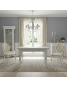 Tavolo costruito in legno massello di pioppo rendendo il mobile solido e robusto. Piano rettangolare con gambe tornite, dotato di due allunghe laterali da 40 cm allungabile con apertura laterale da entrambe i lati, detta anche ' apertura a tiro '. Le allunghe sono riposte sotto il piano pronte all' occorrenza per ospitare numerose persone. Ideale per la zona giorno o per la zona della taverna ospitando amici per il pranzo o per la cena.