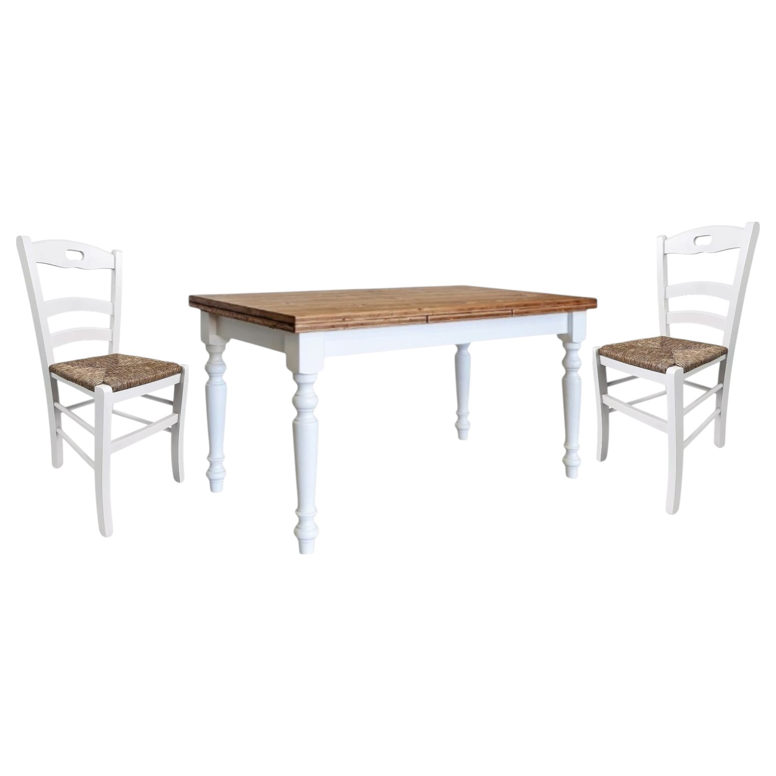 Set tavolo shabby gamba tornita 100x70 120x80 130x85 140x80 160x85 allungabile con 4/6 sedie seduta paglia