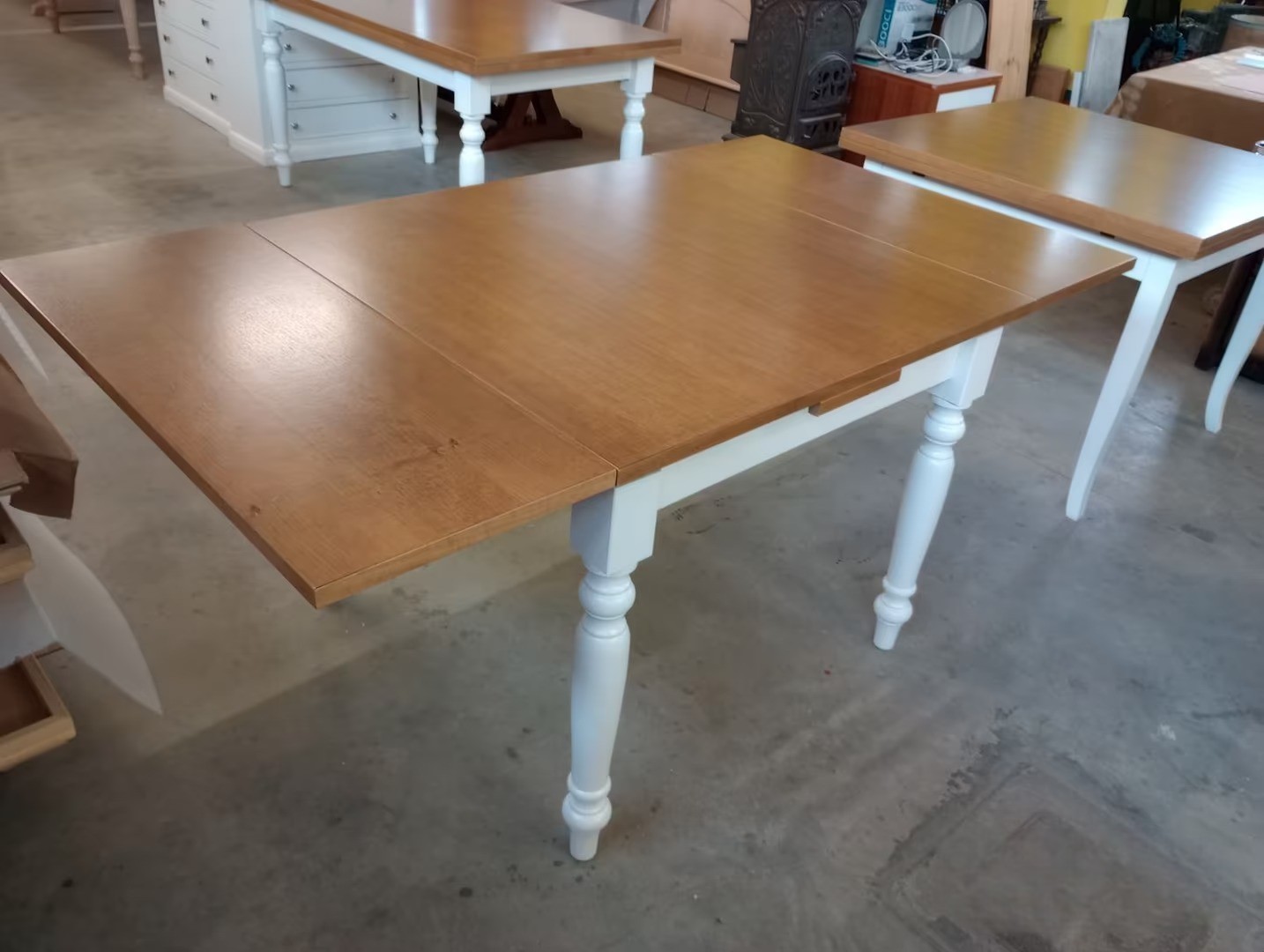 Tavolo shabby costruito in legno massello di pioppo rendendo il mobile solido e robusto. Piano rettangolare con gambe tornite, dotato di due allunghe laterali allungabile con apertura laterale da entrambe i lati, detta anche ' apertura a tiro '. Le allunghe sono riposte sotto il piano pronte all' occorrenza per ospitare numerose persone. Ideale per la zona giorno o per la zona della taverna ospitando amici per il pranzo o per la cena.