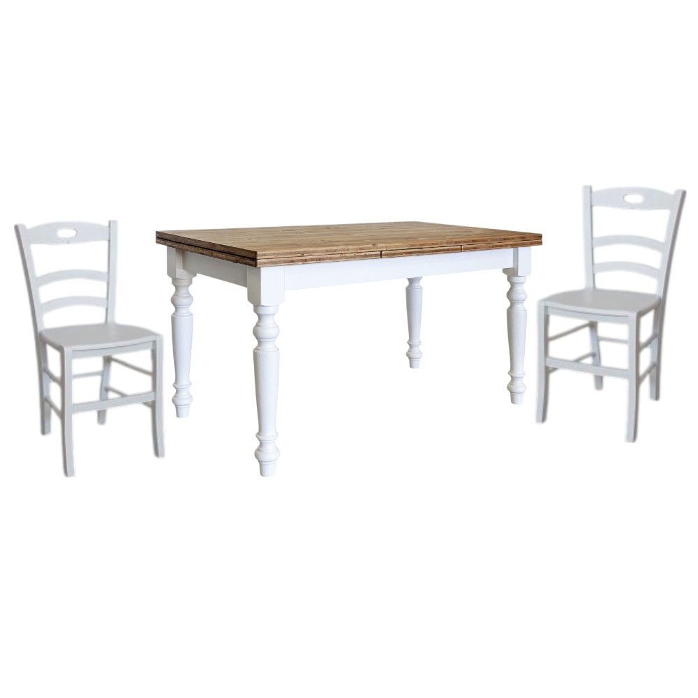 Set tavolo shabby gamba tornita 100x70 120x80 130x85 140x80 160x85 allungabile con 4/6 sedie seduta legno