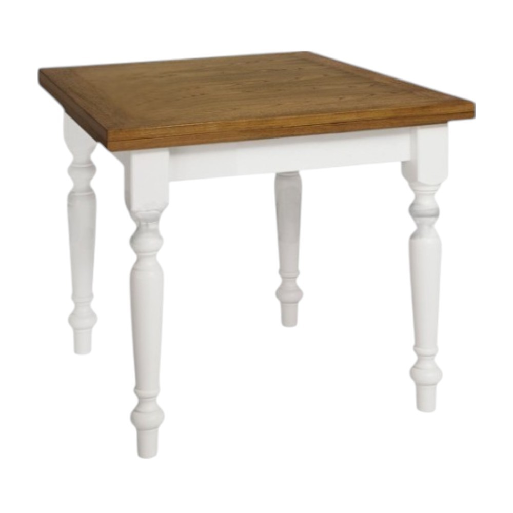Set tavolo quadrato shabby gamba tornita 90x90 100x100 allungabile con 4/6 sedie seduta paglia VISTA FRONTALE