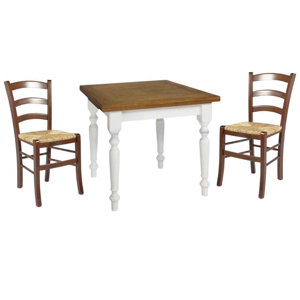 Set tavolo quadrato shabby gamba tornita 90x90 100x100 allungabile con 4/6 sedie seduta paglia