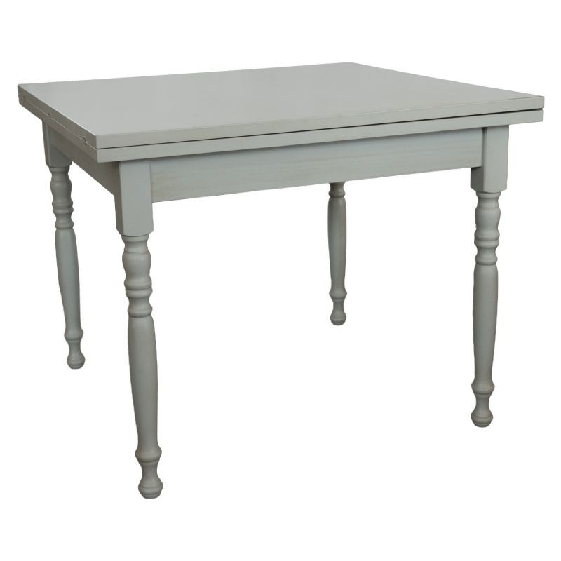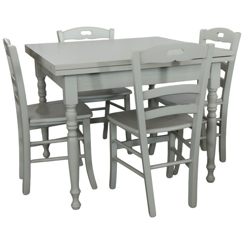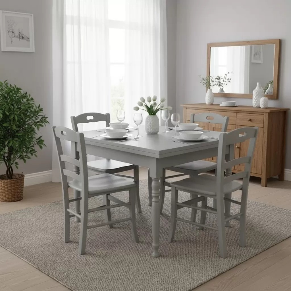 Set tavolo quadrato shabby grigio anticato tornito 90x90 100x100 allungabile con 4 sedie seduta legno