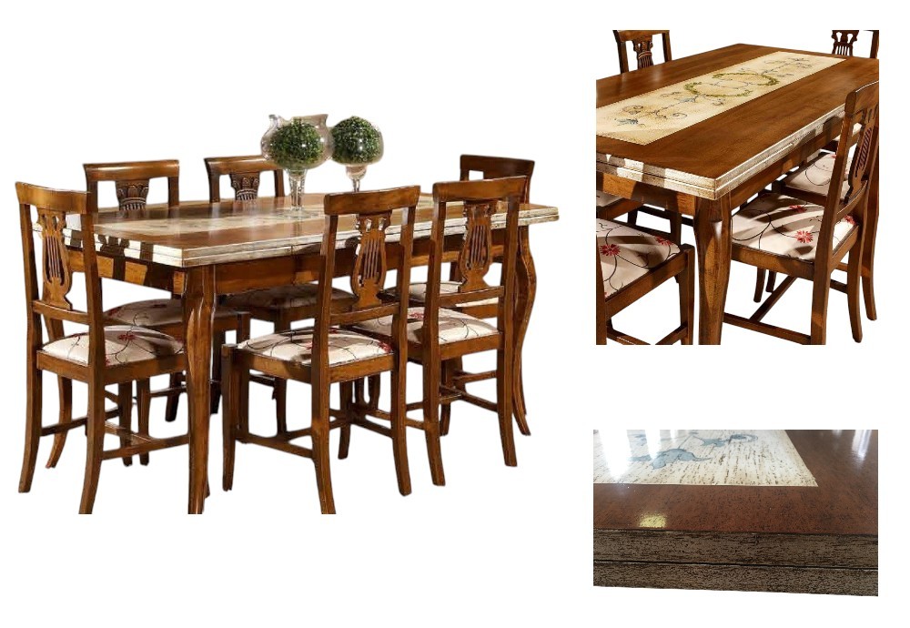 Set tavolo provenzale dipinto 160x85 allungabile con 6 sedie seduta imbottita
