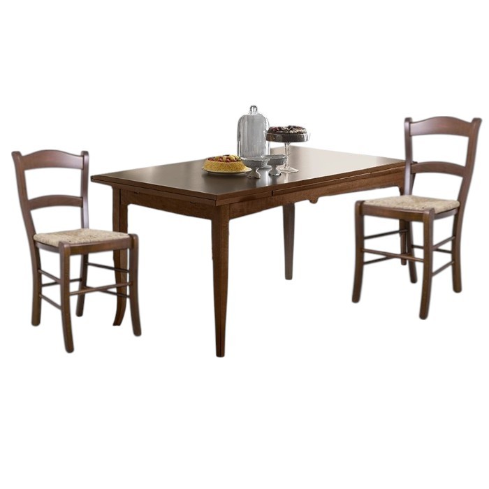 Set tavolo goccia tinta noce 160x85 allungabile con 6 sedie Friuli seduta paglia