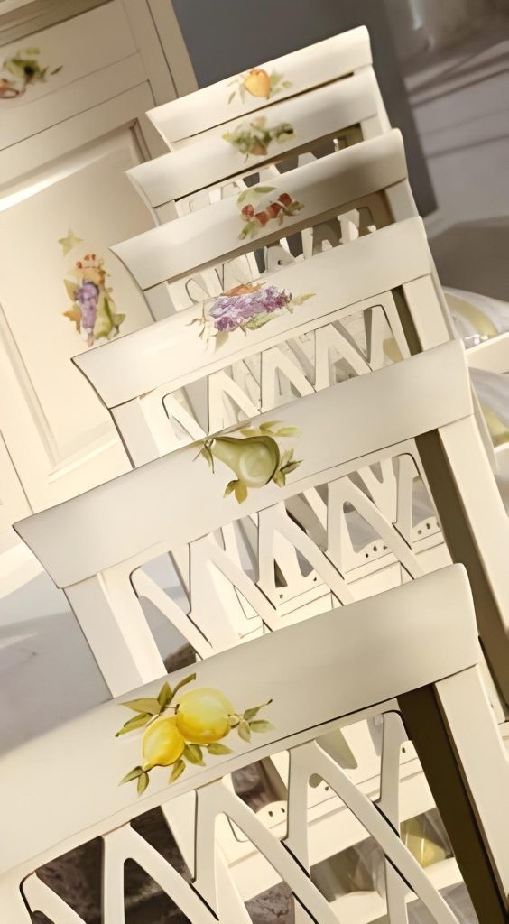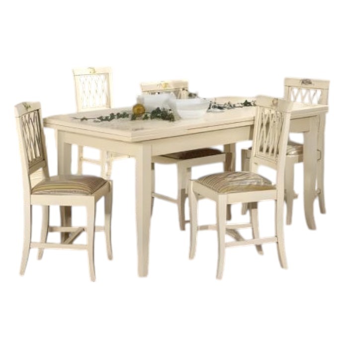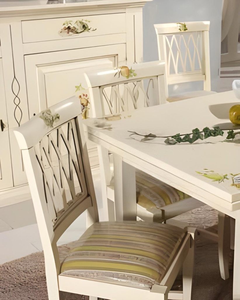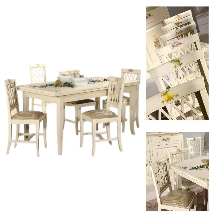 Set tavolo provenzale dipinto 120x80 130x85 140x80 160x85 allungabile con 4/6 sedie seduta imbottita