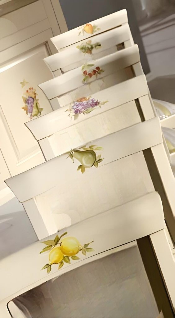 Set tavolo provenzale dipinto 120x80 130x85 140x80 160x85 allungabile con 4/6 sedie seduta legno