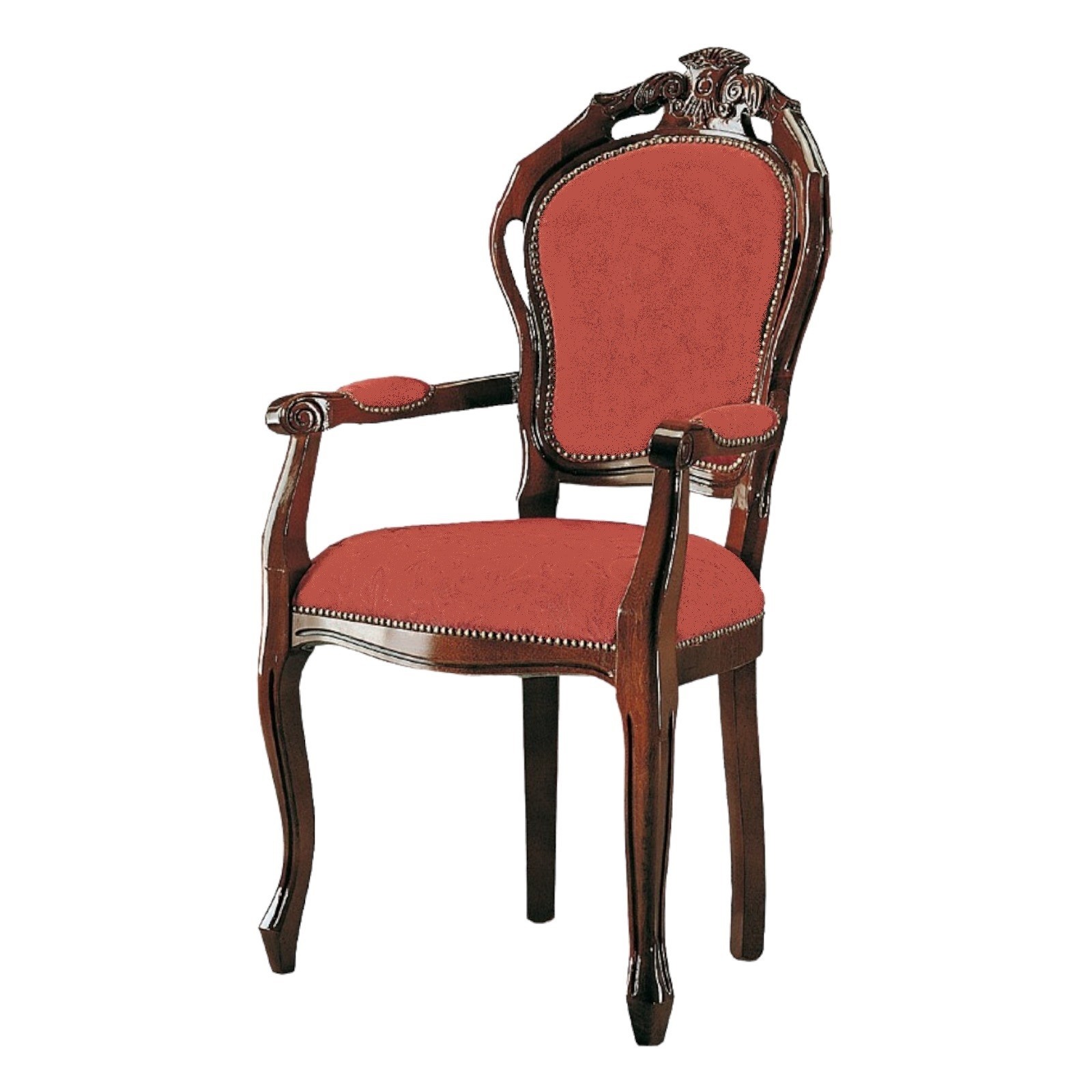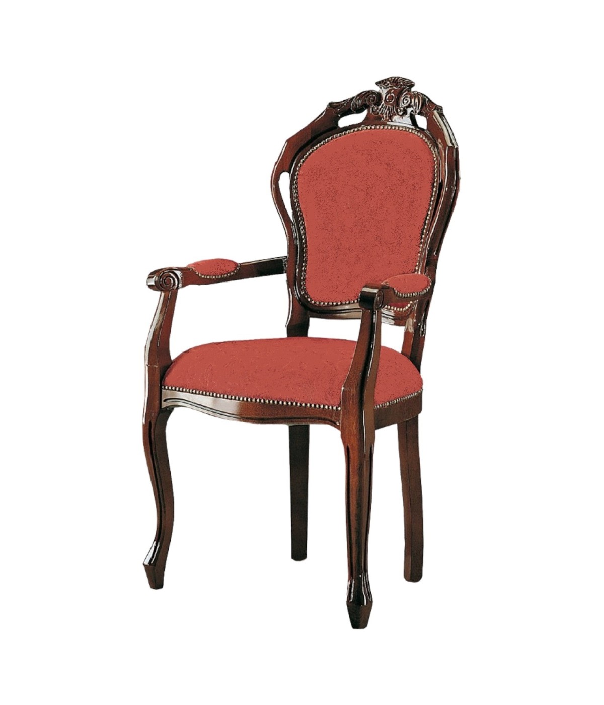 SEDIA CLASSICA CON BRACCIOLI SEDUTA IMBOTTITA ECOEPELLE LEGNO TINTA NOCE