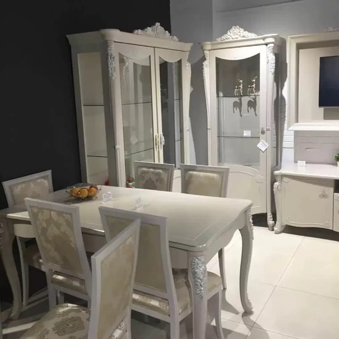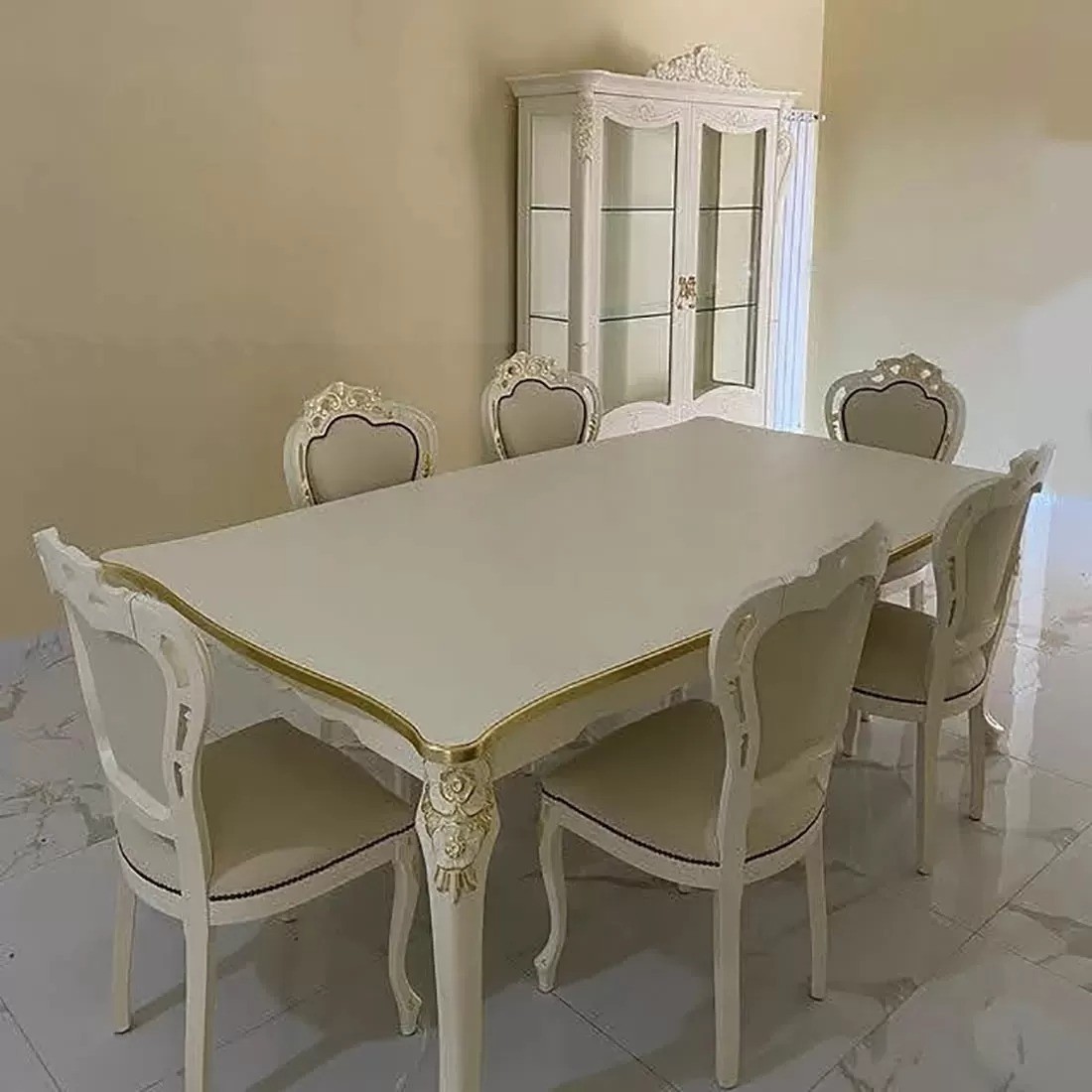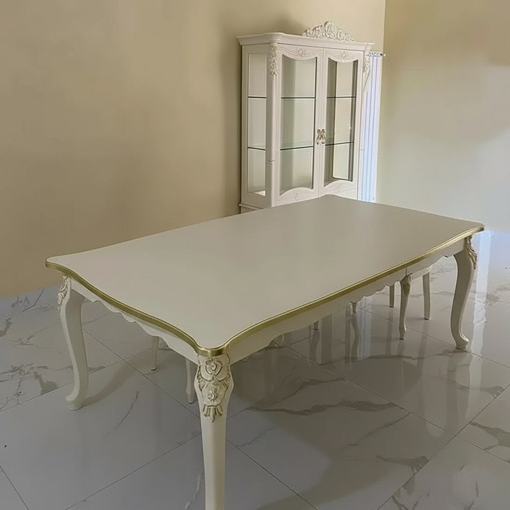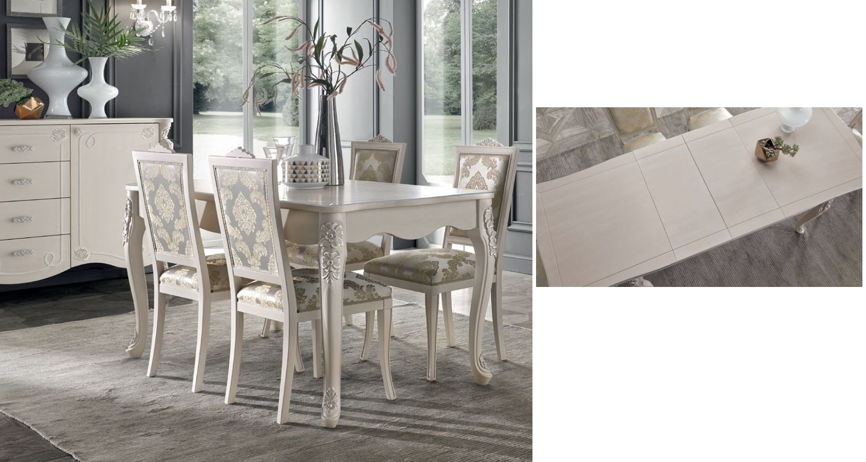 • Tavolo barocco allungabile bianco anticato filo oro/argento 160x90x82